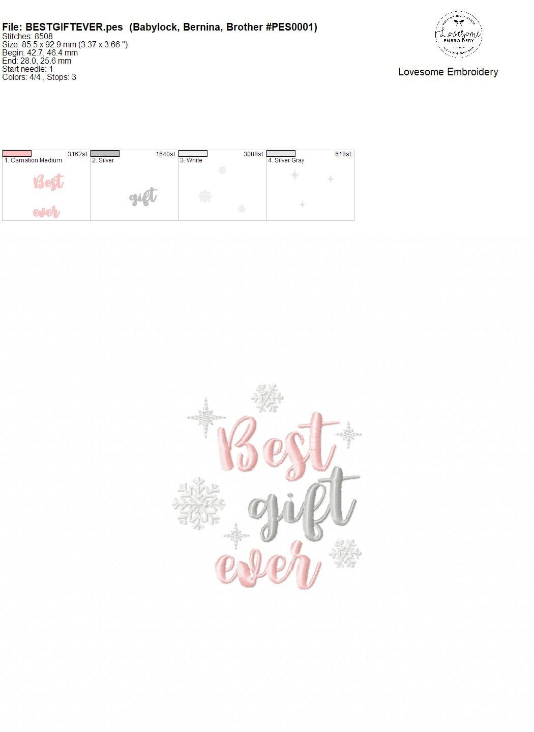 Best Gift Ever 4x4 Machine Embroidery Design Digital Download | Lovesome Embroidery