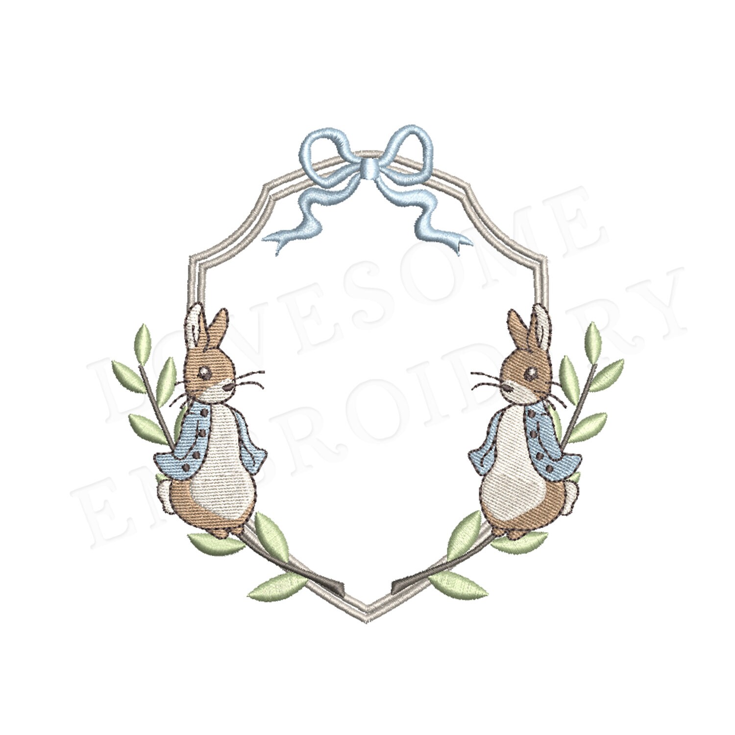Peter Rabbits 6x10 Baby Crest Machine Embroidery Design File Digital Download | Lovesome Design