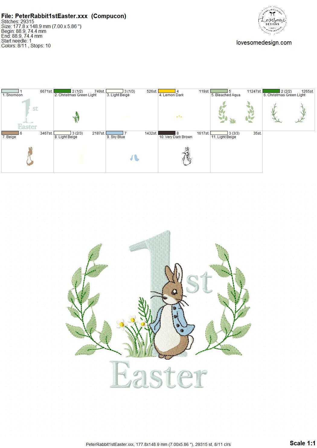 You can find the details like exact size, stitch count and color chart on the technical document which can be viewed within listings images.