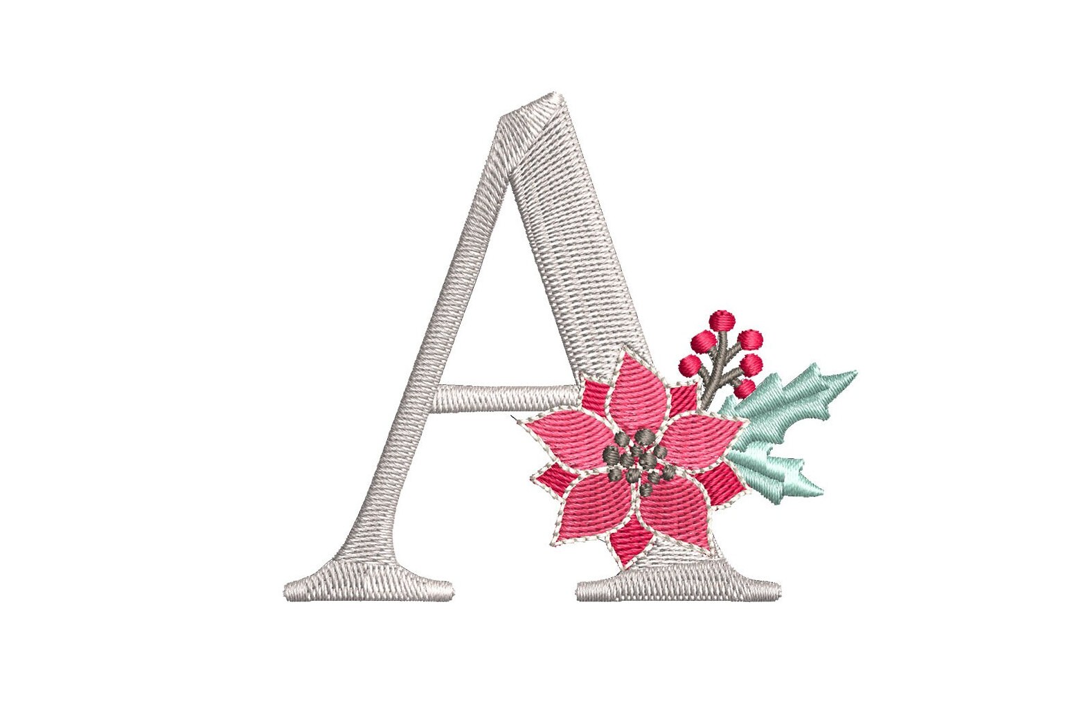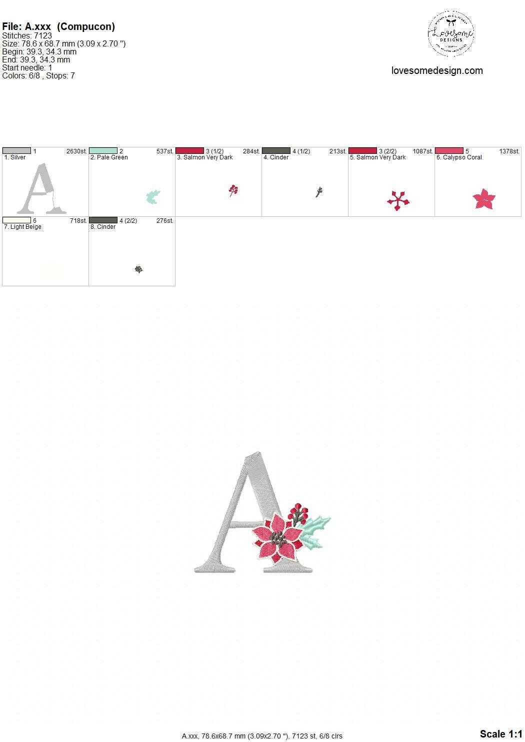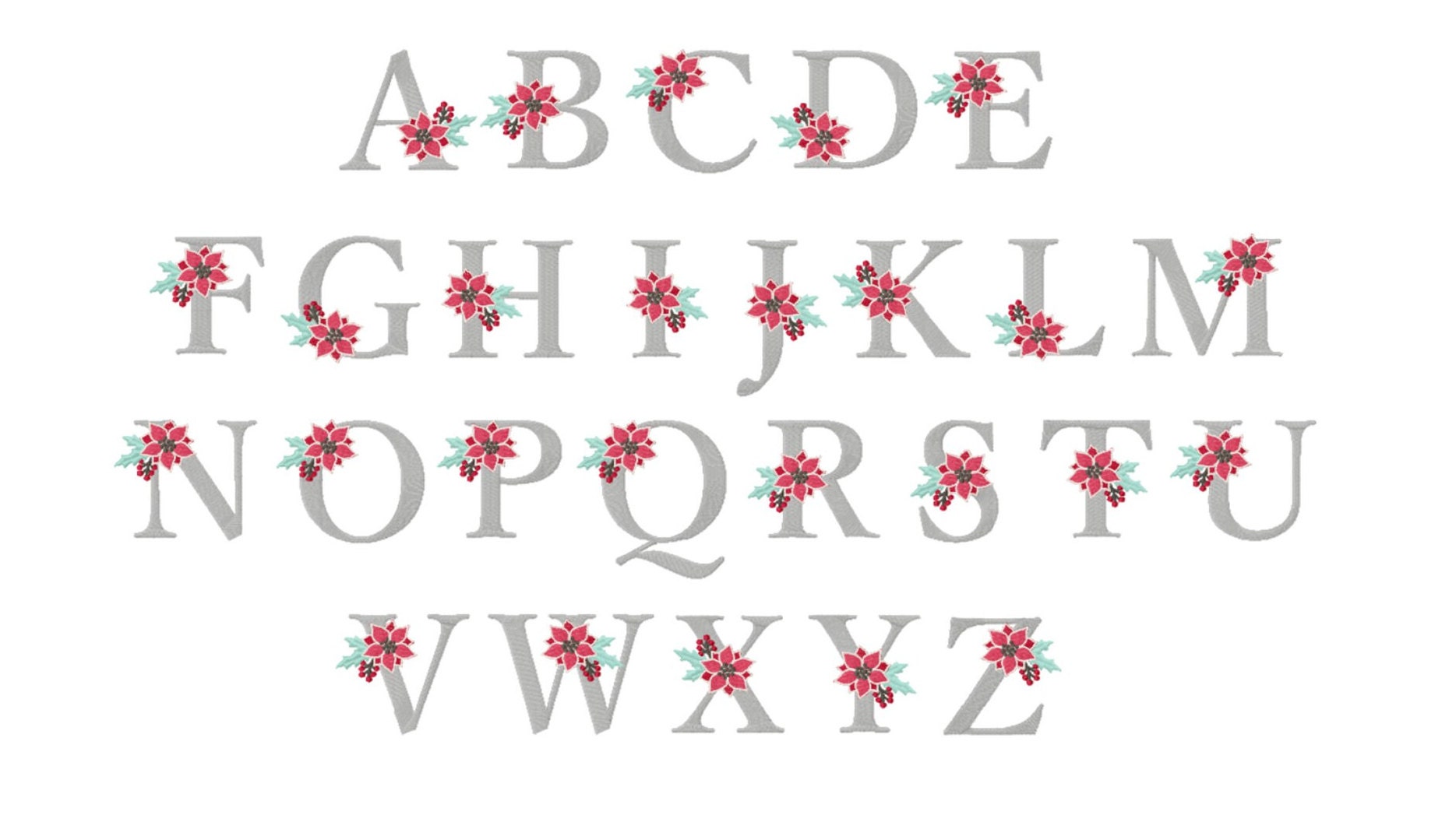 Poinsettia Alphabet 3inch A-Z Machine Embroidery Font Digital Download | Lovesome Design