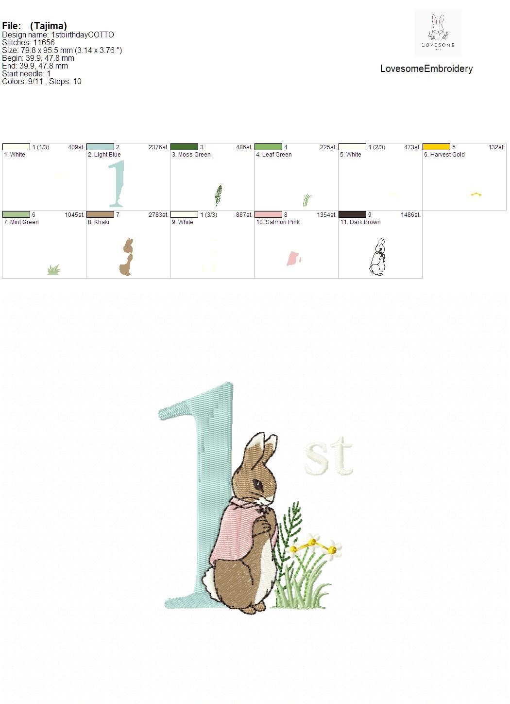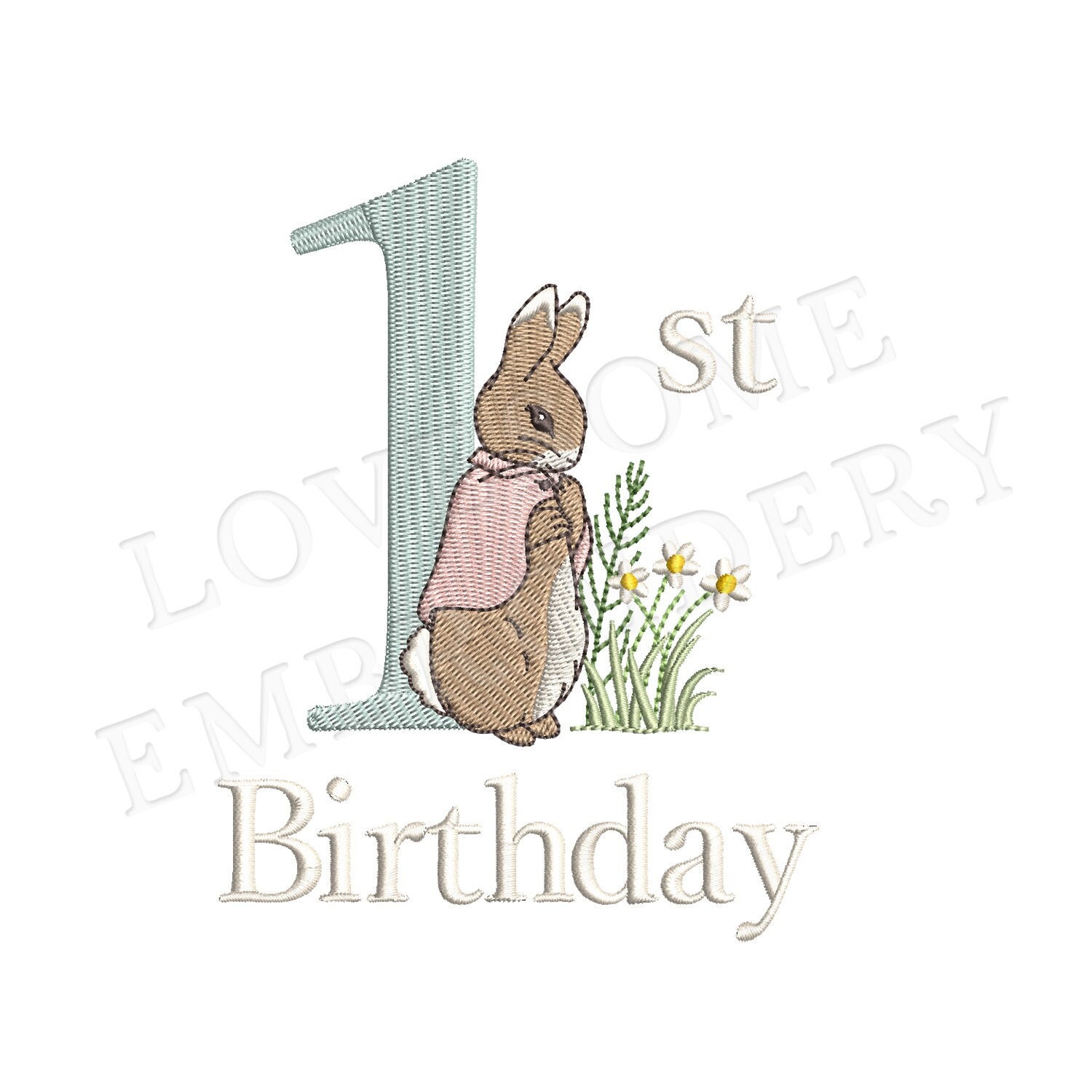 This listing features a machine embroidery file of Cottontail Rabbit First Birthday design. Designed with love for the birthday of the little one.