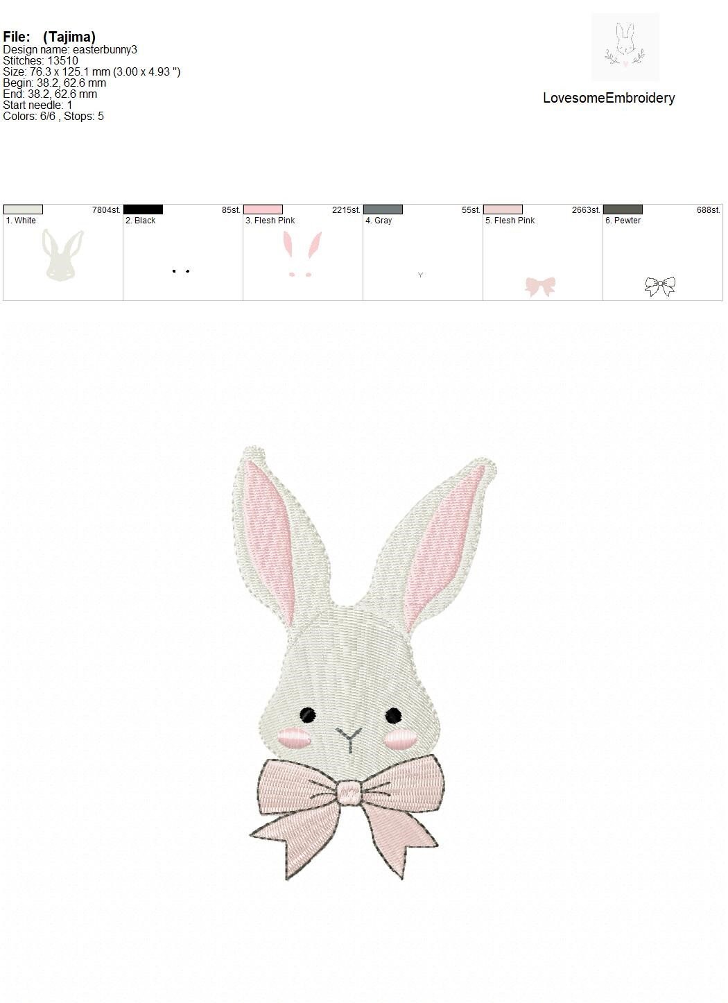 This listing features a machine embroidery file of an adorable little bunny with a bow in 5inch size. Designed with love for the birthday of the little one.