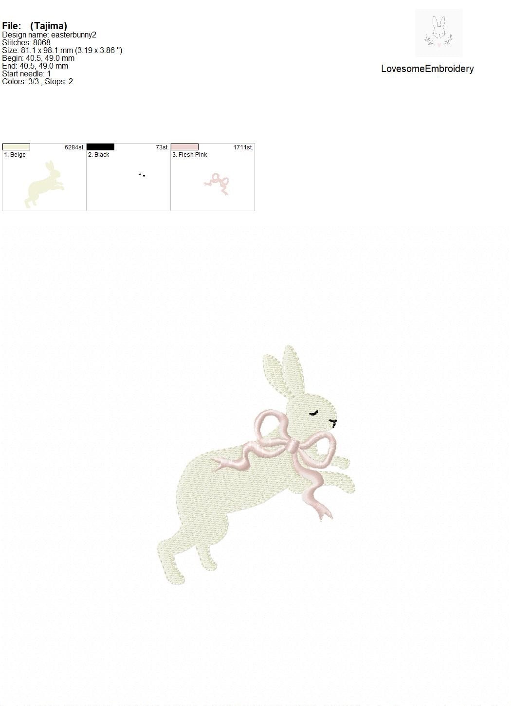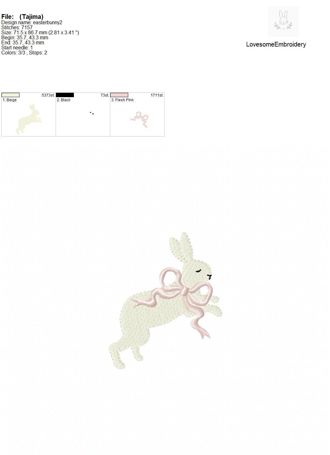 Cute Bunny Three Sizes Machine Embroidery Design, Easter Rabbit with Bow Multiple Size Embroidery Digital File | Lovesome Design