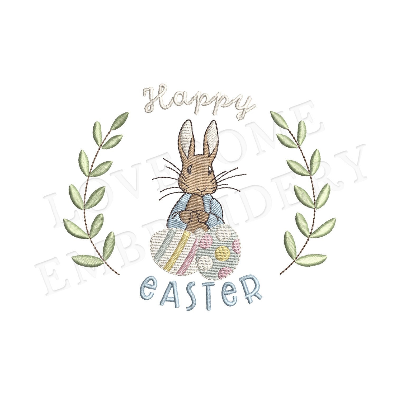 Happy Easter 4x4 Peter Rabbit Machine Embroidery Design Digital Download | Lovesome Embroidery