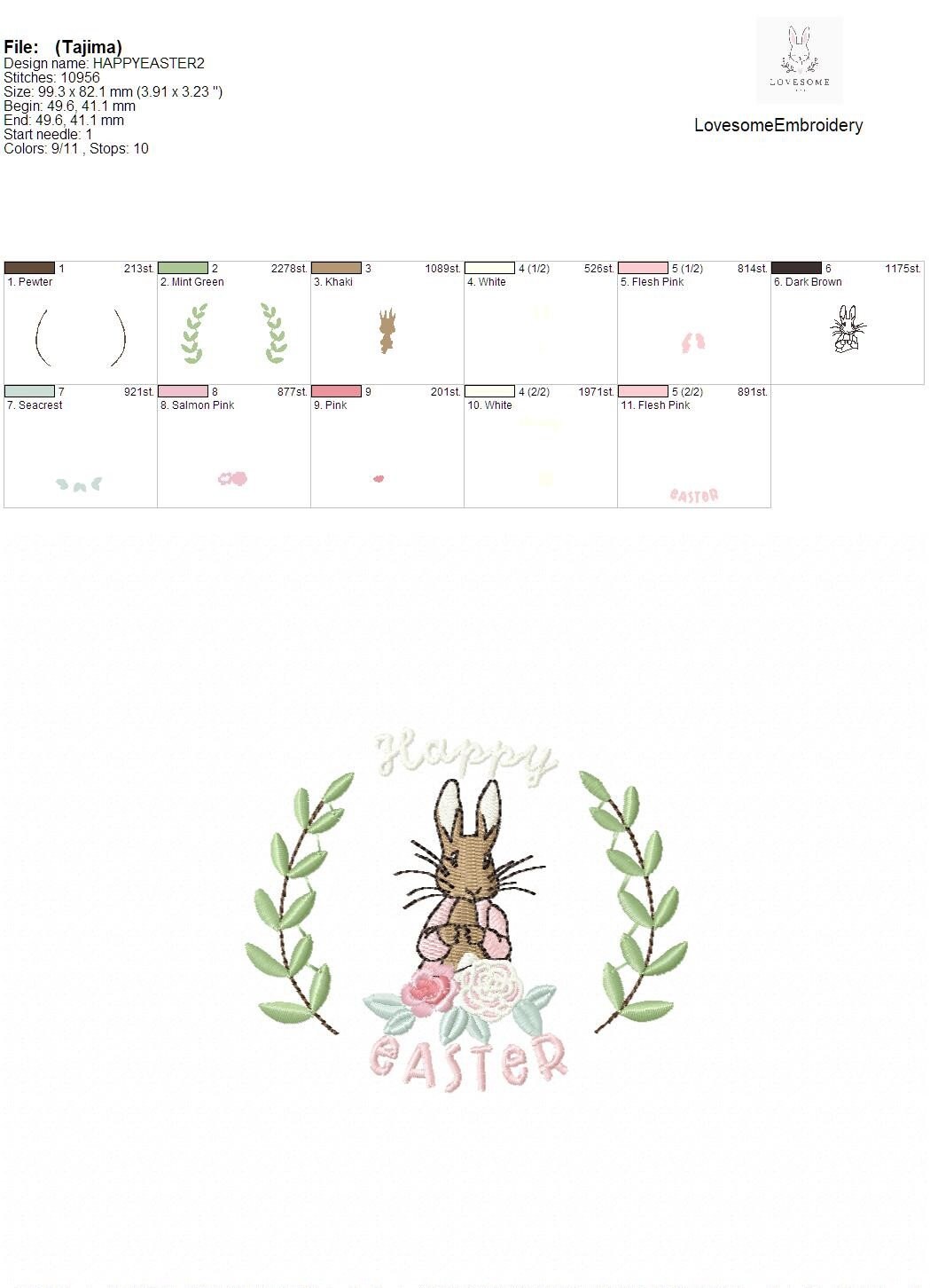 Happy Easter 4x4 Flopsy Rabbit Machine Embroidery Design Digital Download | Lovesome Embroidery