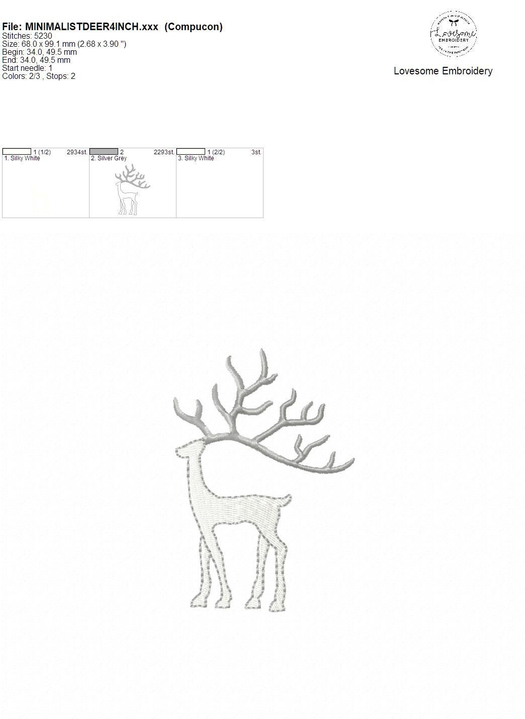 Minimalist Deer 4x4 Embroidery Design, Modern Scandinavian Elegant Deer, Chic Reindeer Embroidery File | Lovesome Embroidery