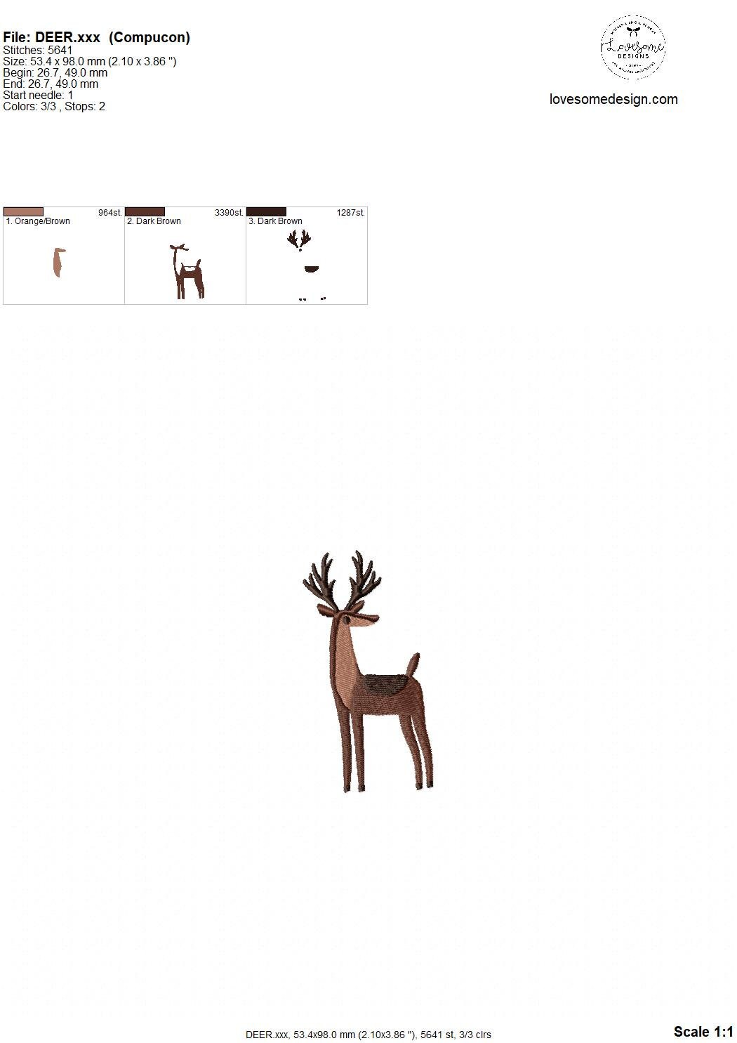 Deer 4x4 Embroidery Design, Modern Decorative Embroidery Design, Elegant Deer Embroidery Farmhouse Style | Lovesome Embroidery