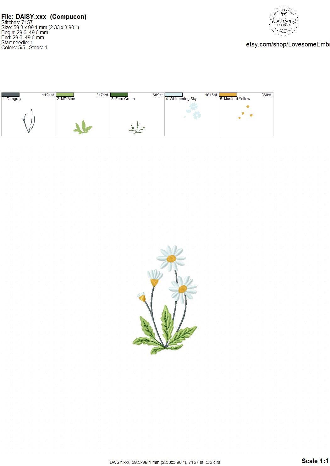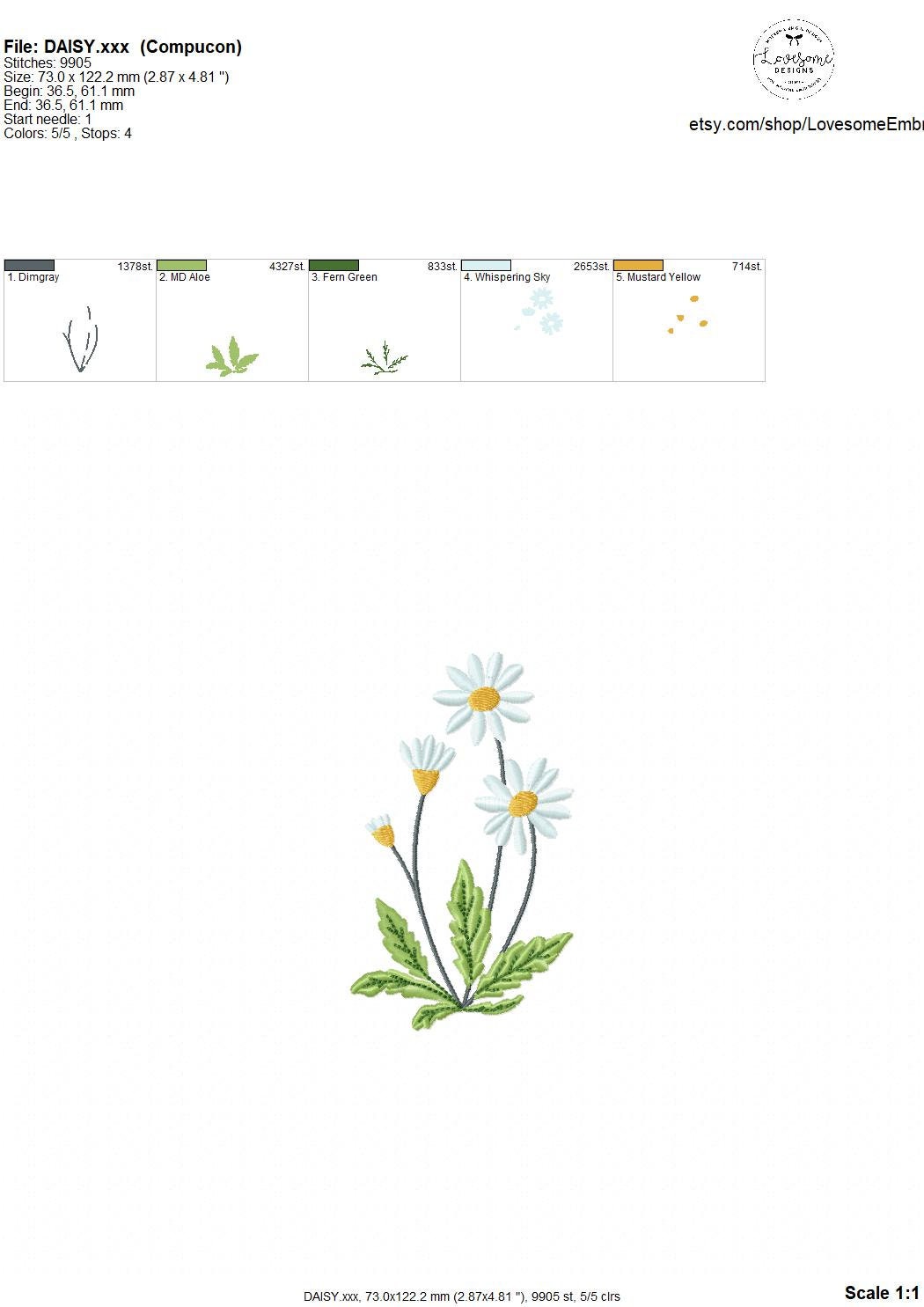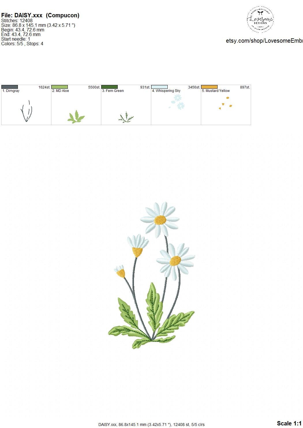 Daisy Multisize Machine Embroidery Design File Digital Download | Lovesome Design