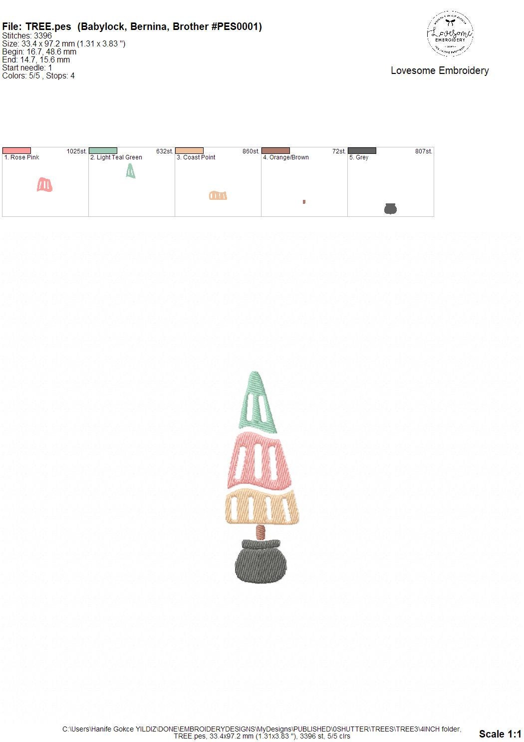 Christmas Tree 4x4 Pastel Colors Embroidery Design, Cute Holiday Tree Machine Embroidery File | Lovesome Embroidery