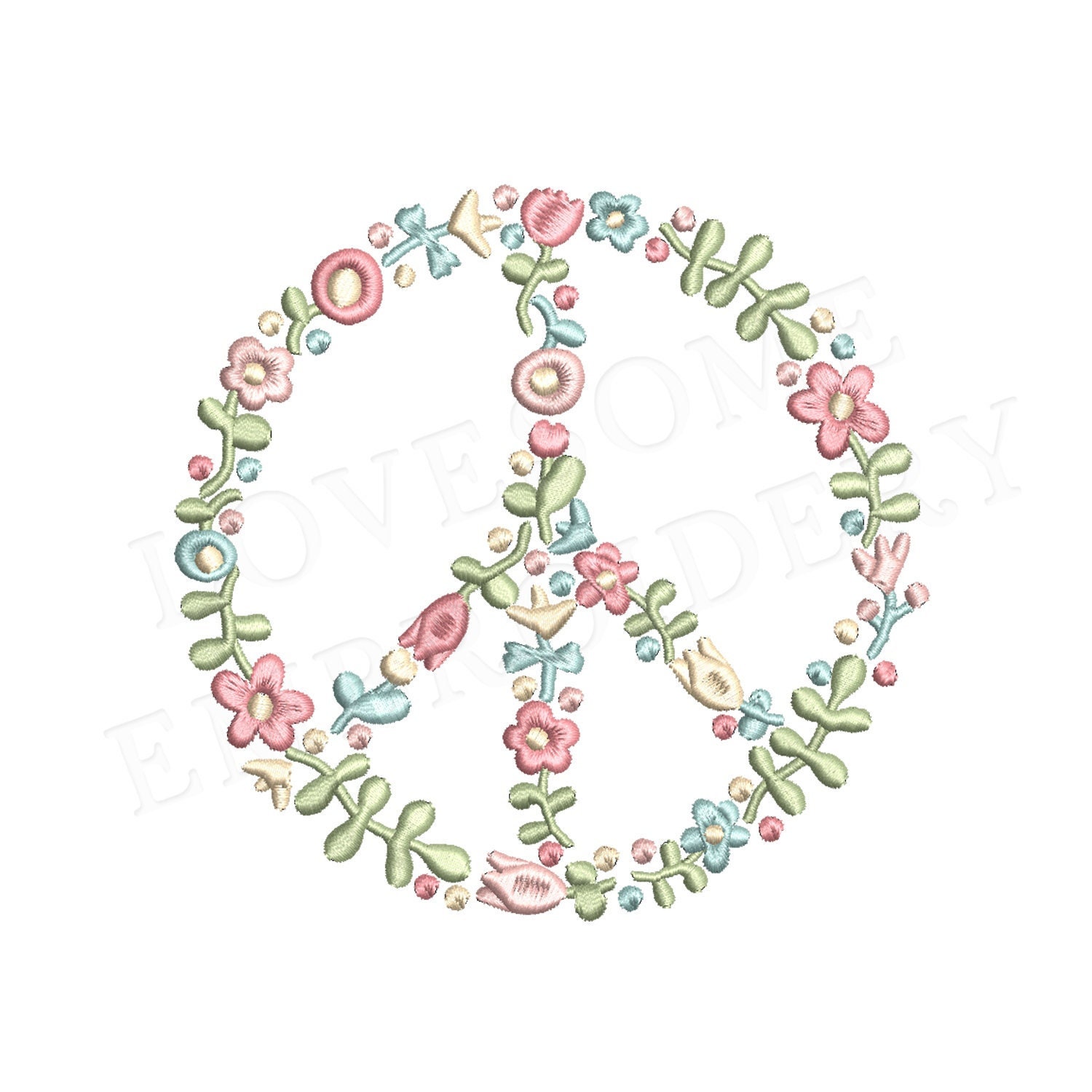 Floral Fill Peace Sign 8inch Embroidery Design Machine Embroidery File Digital Download | Lovesome Embroidery