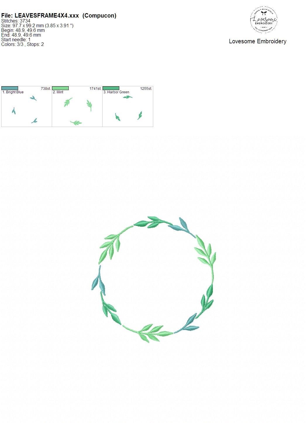 This listing features a machine embroidery file of an elegant botanical wreath in 4inch size with a minimalistic style.