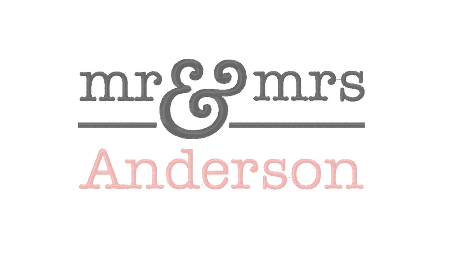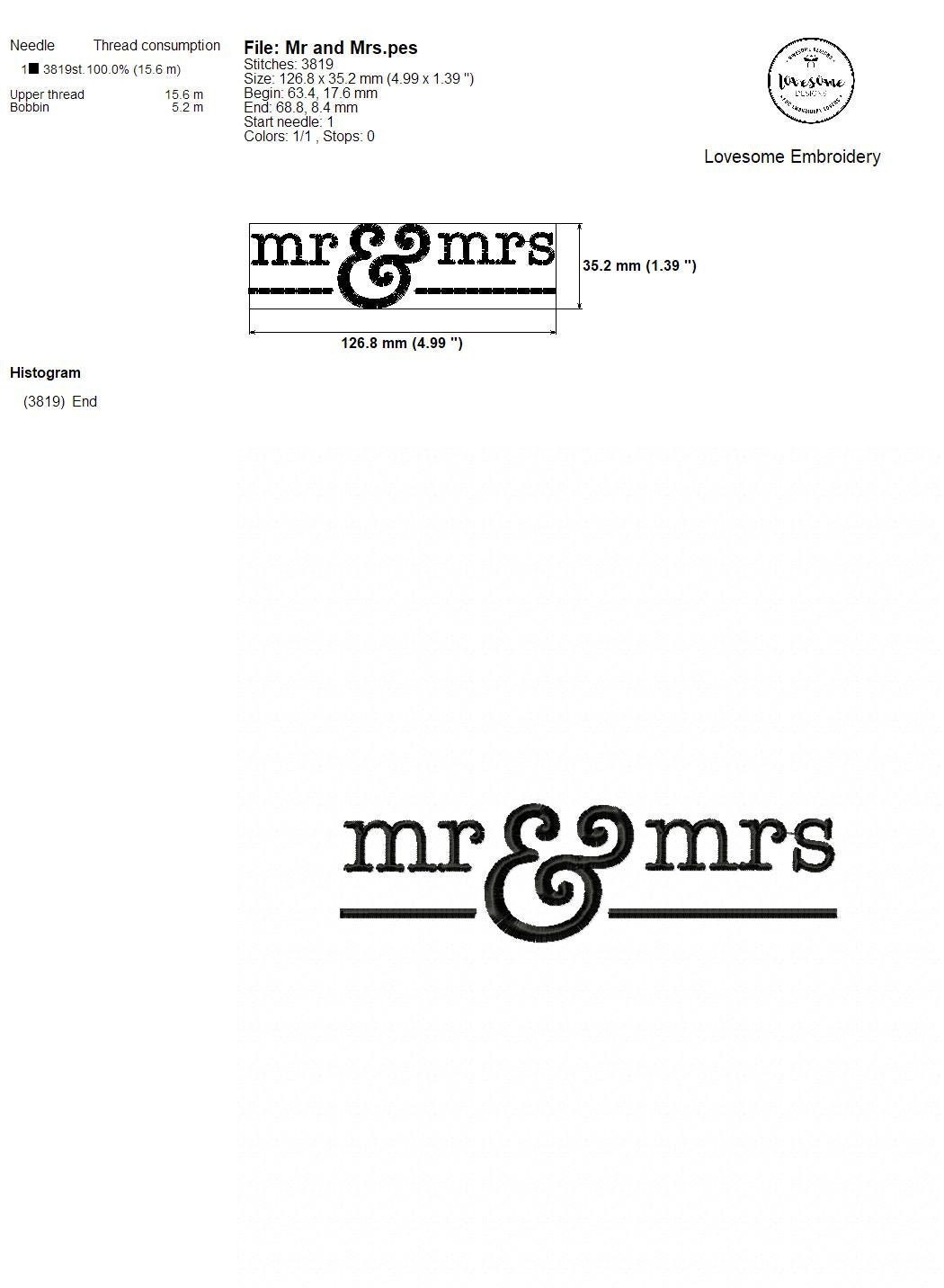 This listing features a machine embroidery file of "Mr & Mrs" with an elegant style in 5inch size.