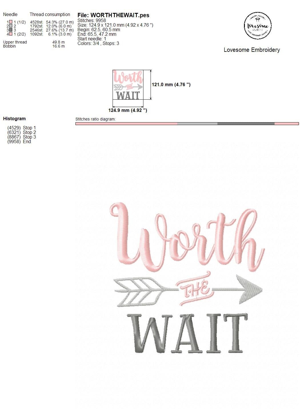 Worth the Wait 5x7 Machine Embroidery Design Digital Download | Lovesome Embroidery