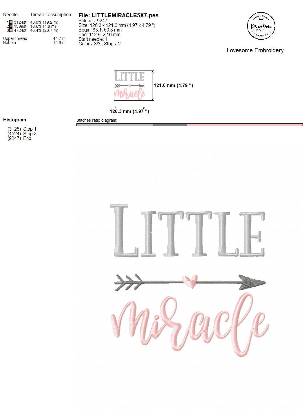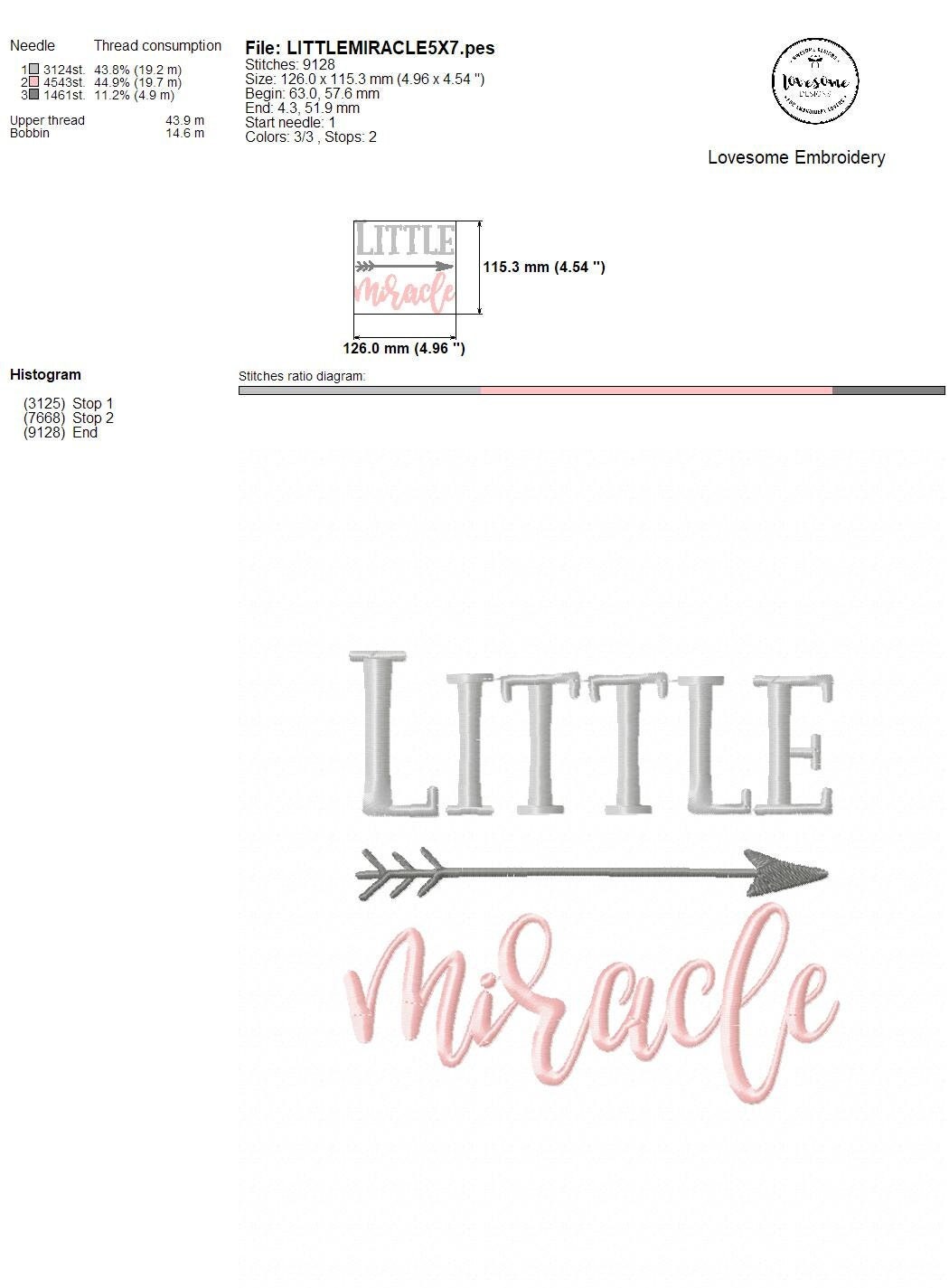 This listing features a machine embroidery file of Little Miracle lettering. Designed with love for the first days of a newborn.