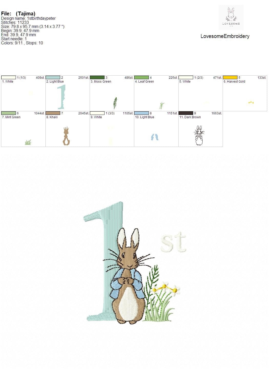 You can find the details like exact size, stitch count and color chart on the technical document which can be viewed within listings images.