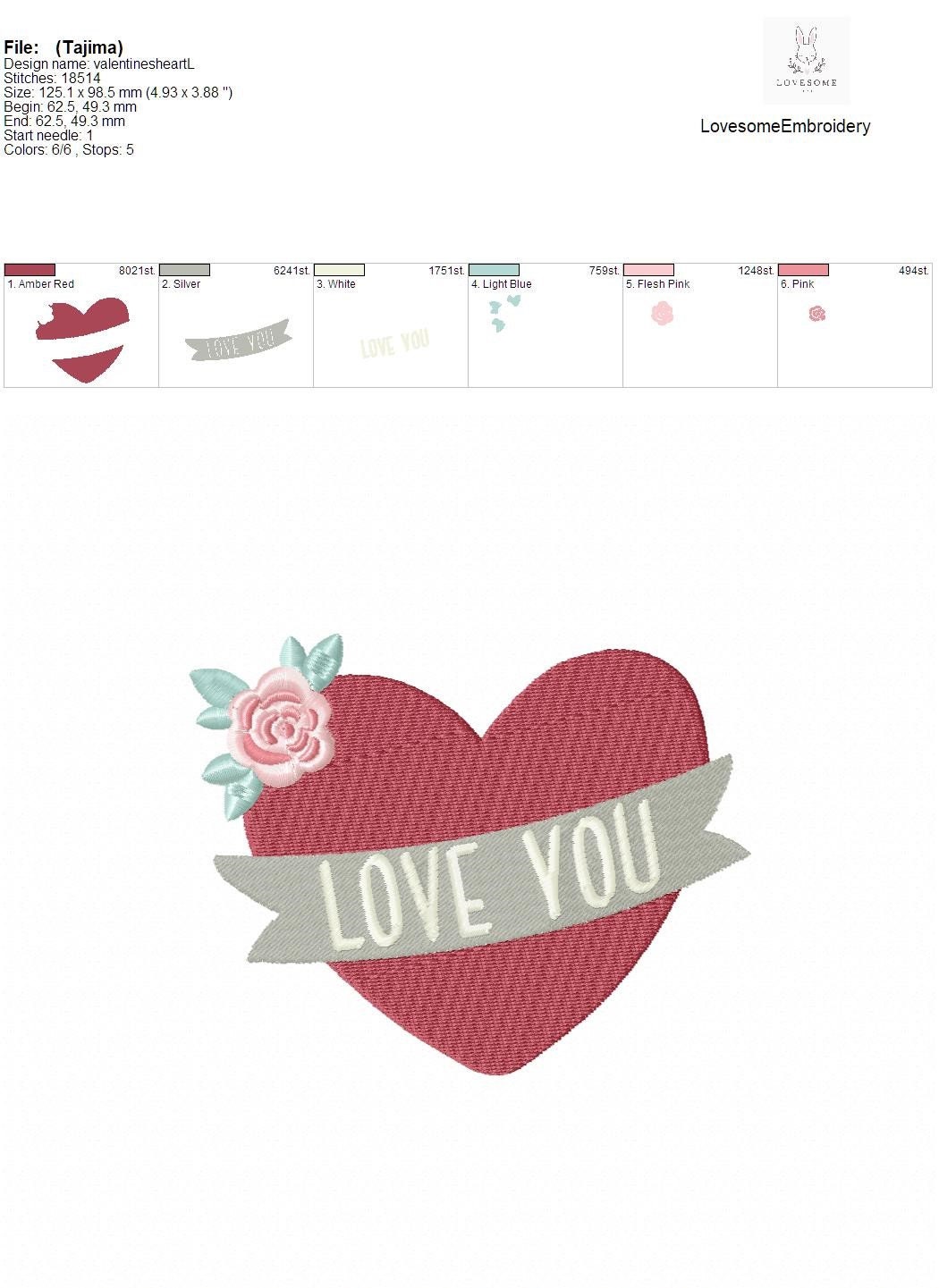 Love You Floral Heart 5inch Valentines Day Machine Embroidery Design Digital Download | Lovesome Embroidery