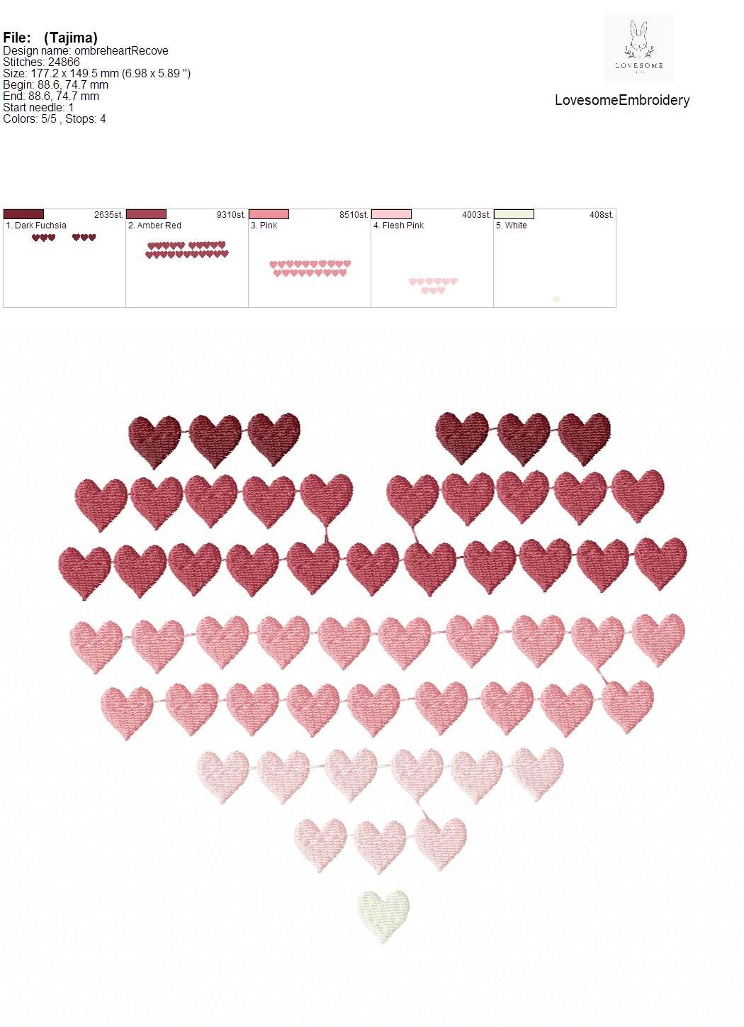 Ombre Heart 7inch Valentines Day Machine Embroidery Design Digital Download | Lovesome Embroidery