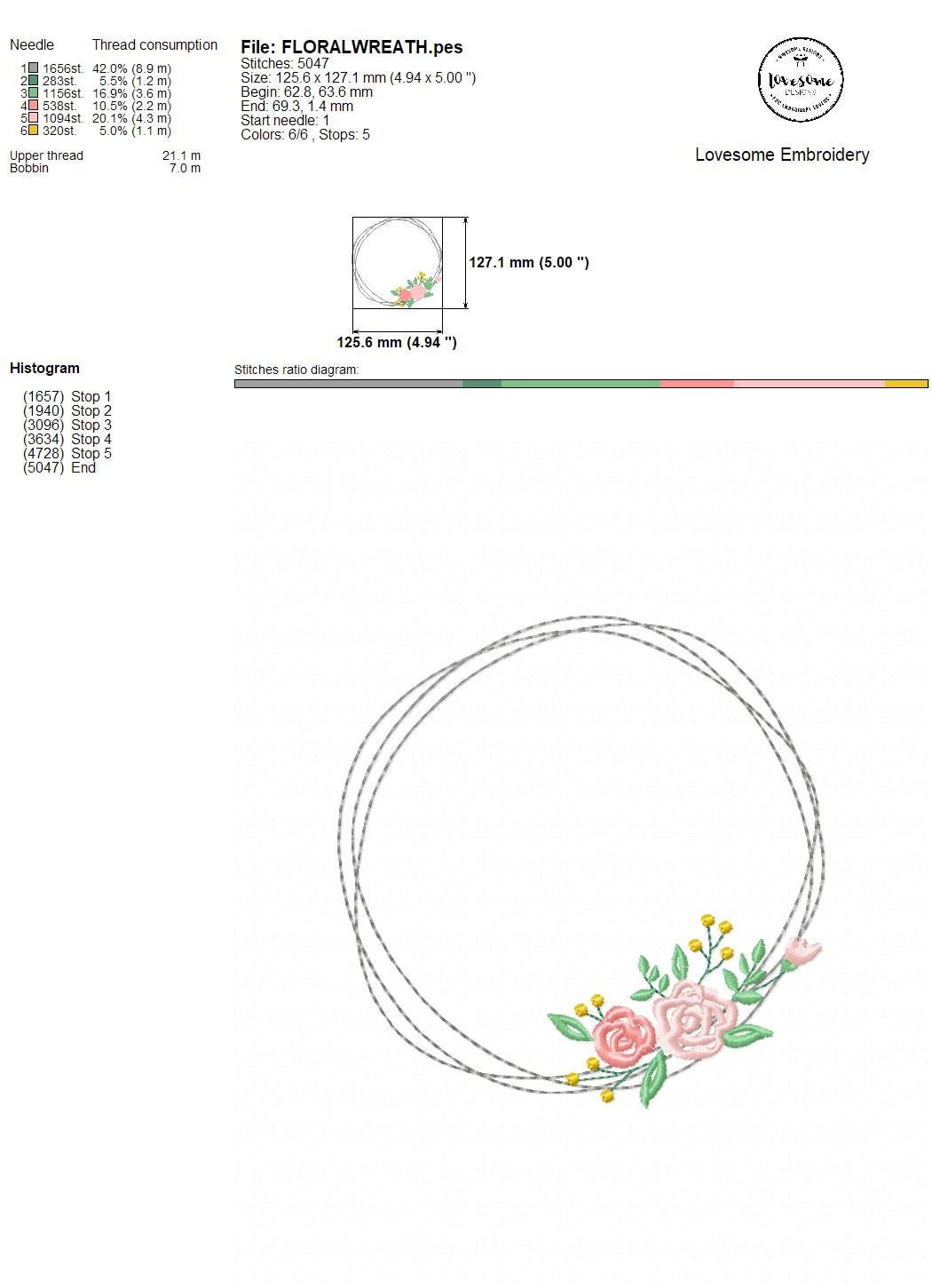 Floral Wreath 5inch Embroidery Design, Modern Floral Embroidery Design, Wreath Embroidery, Laurel Embroidery Design | Lovesome Design