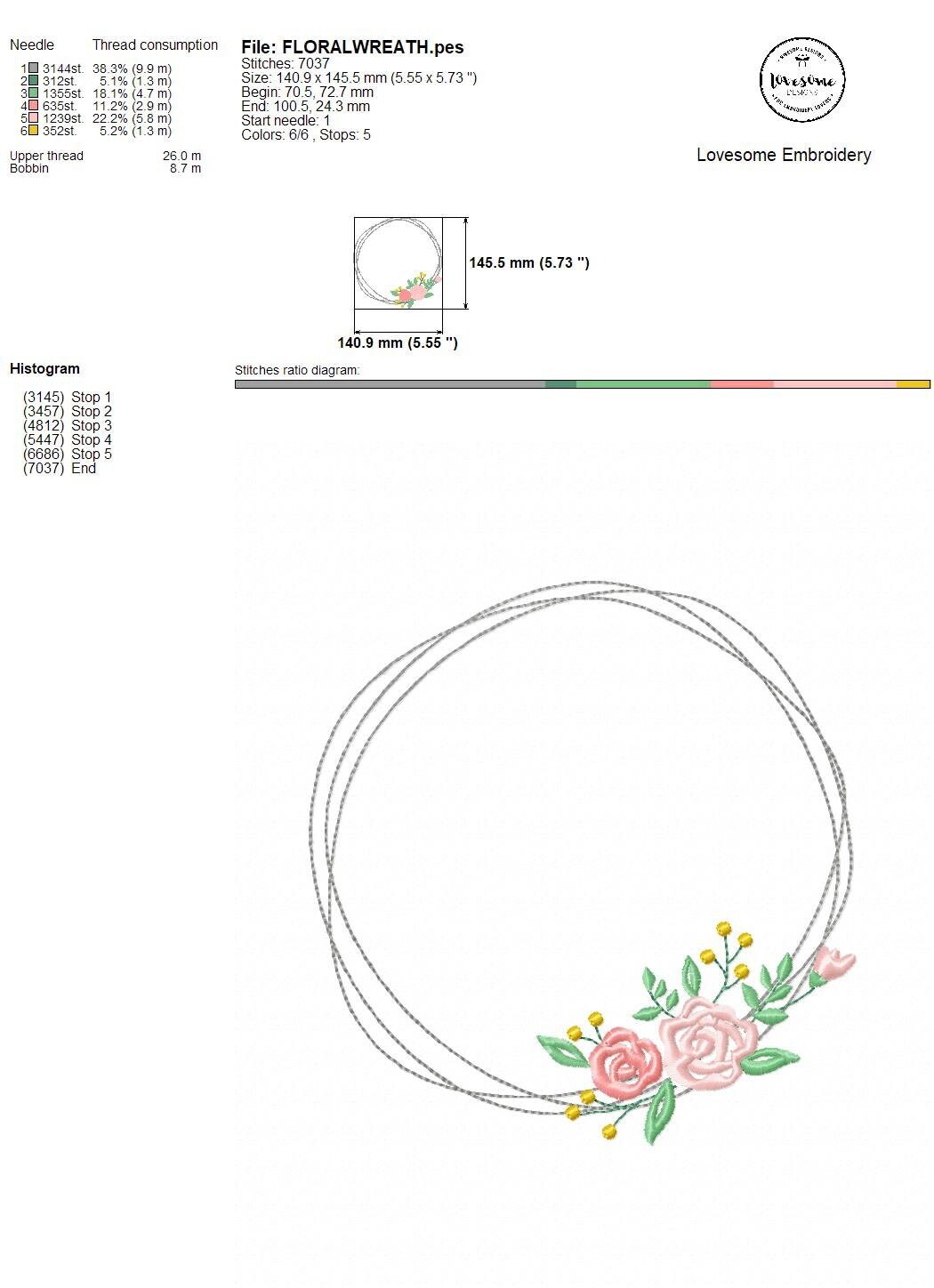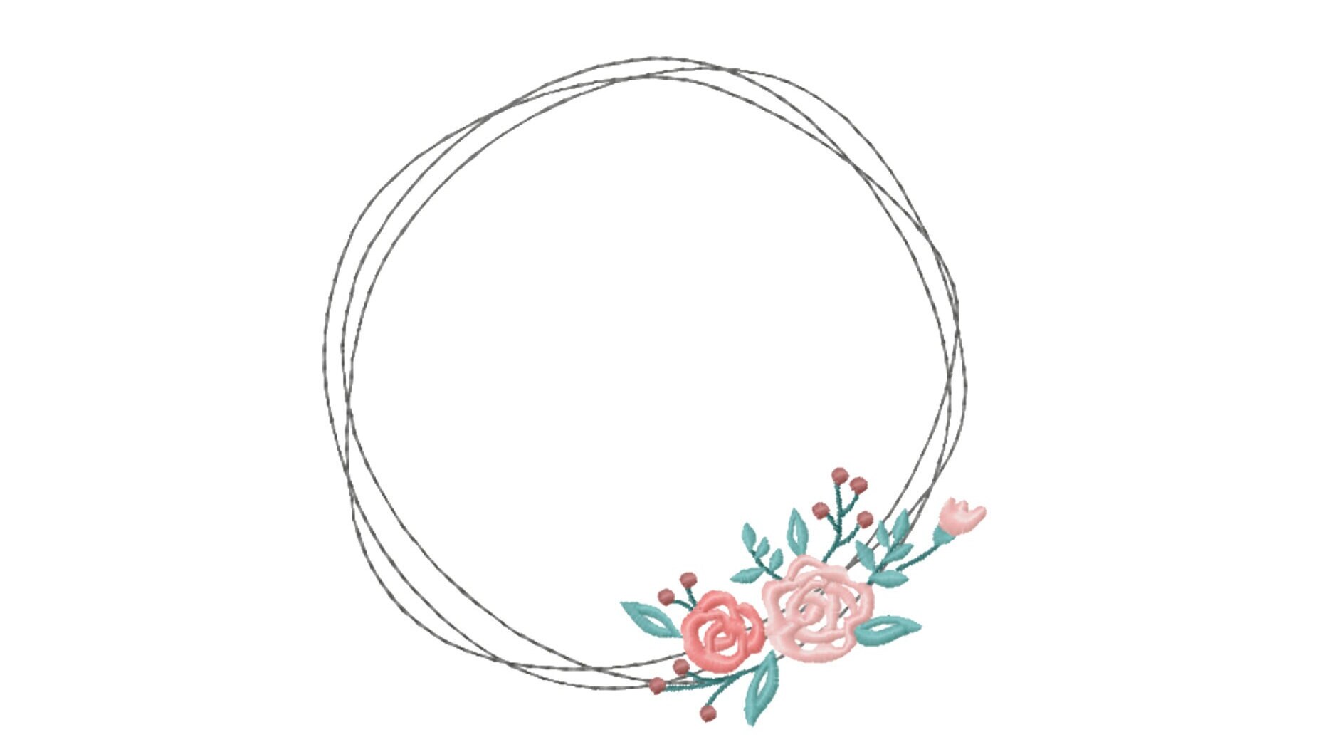 This listing features a machine embroidery file of a beautiful floral wreath in 6inch size with elegant pastel colors.