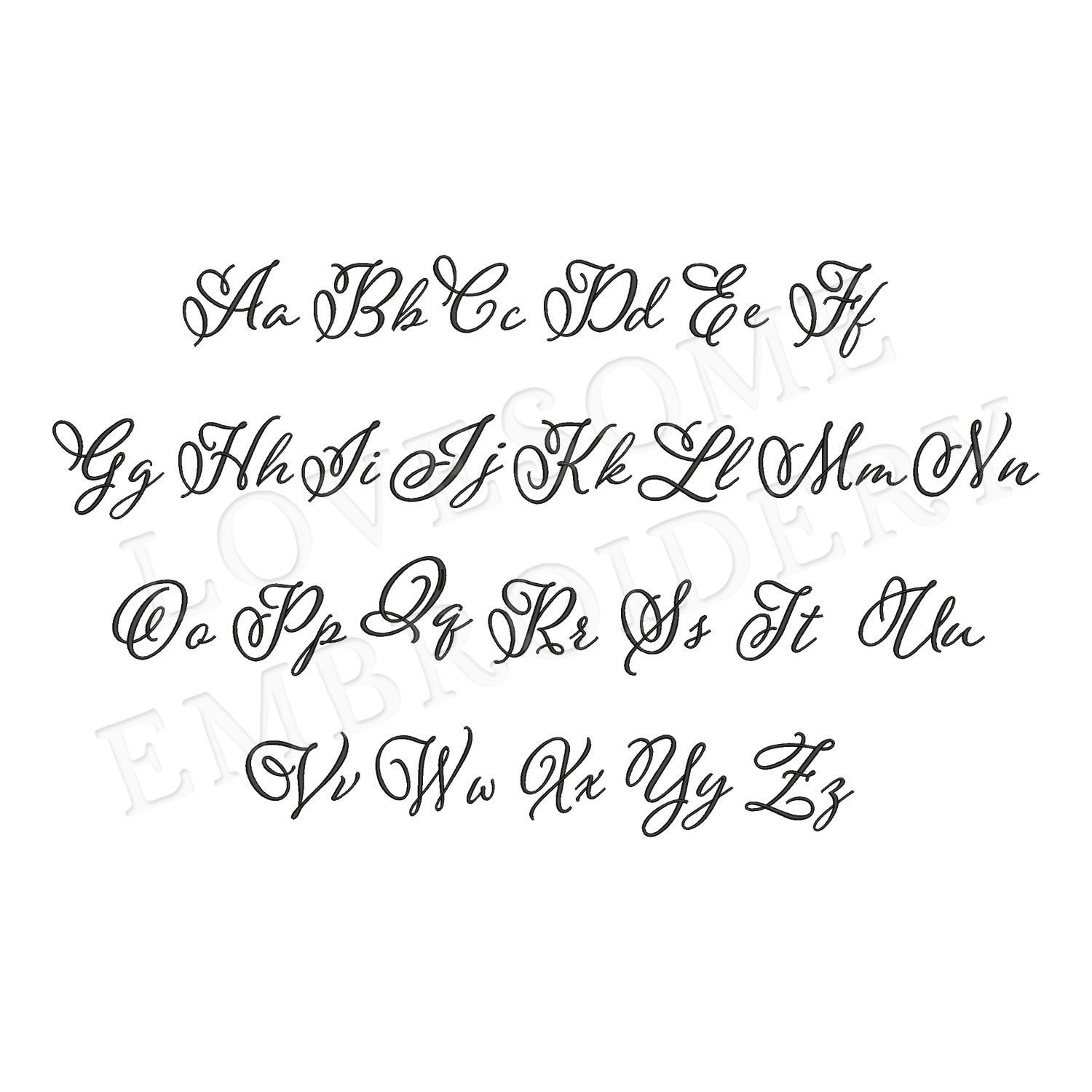 This listing features a machine embroidery font set which includes embroidery files of 26 uppercase and 26 lowercase script letters in 3inch size. (For the whole set, pls see the listing images.)