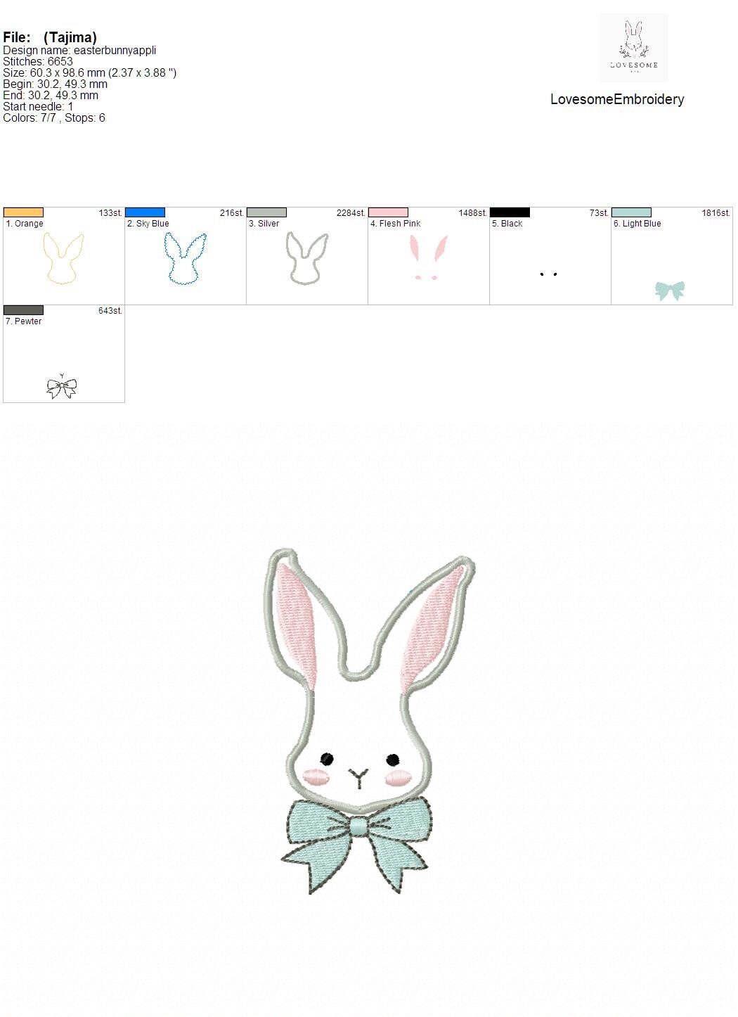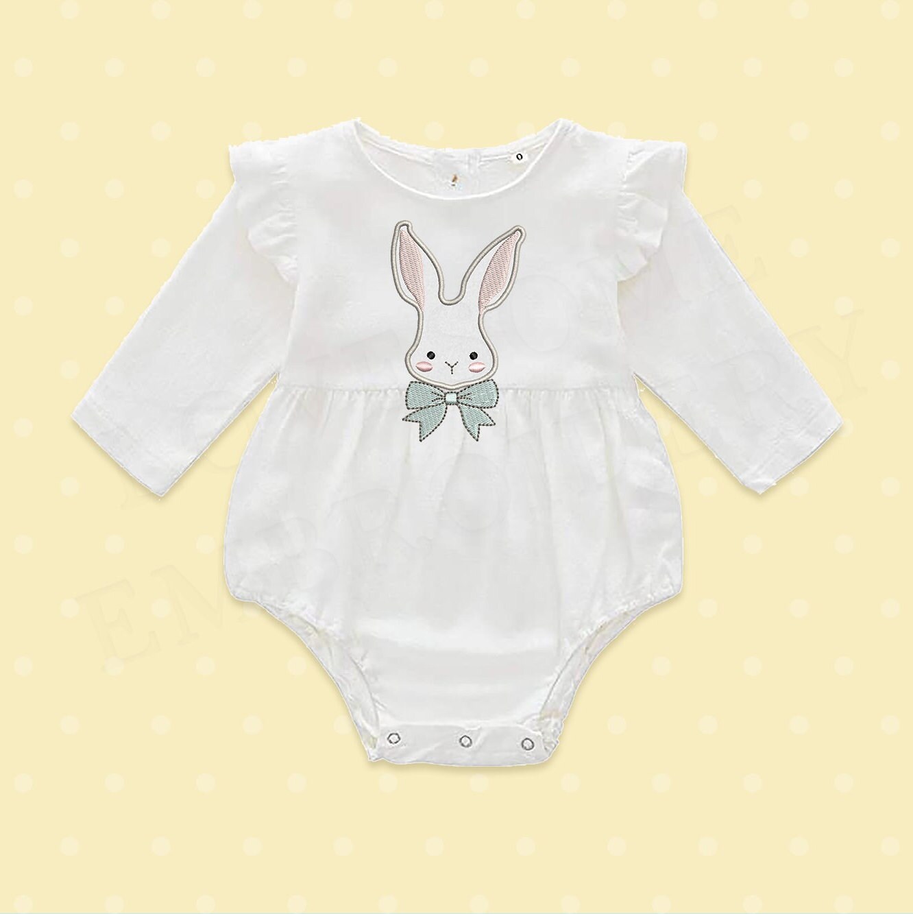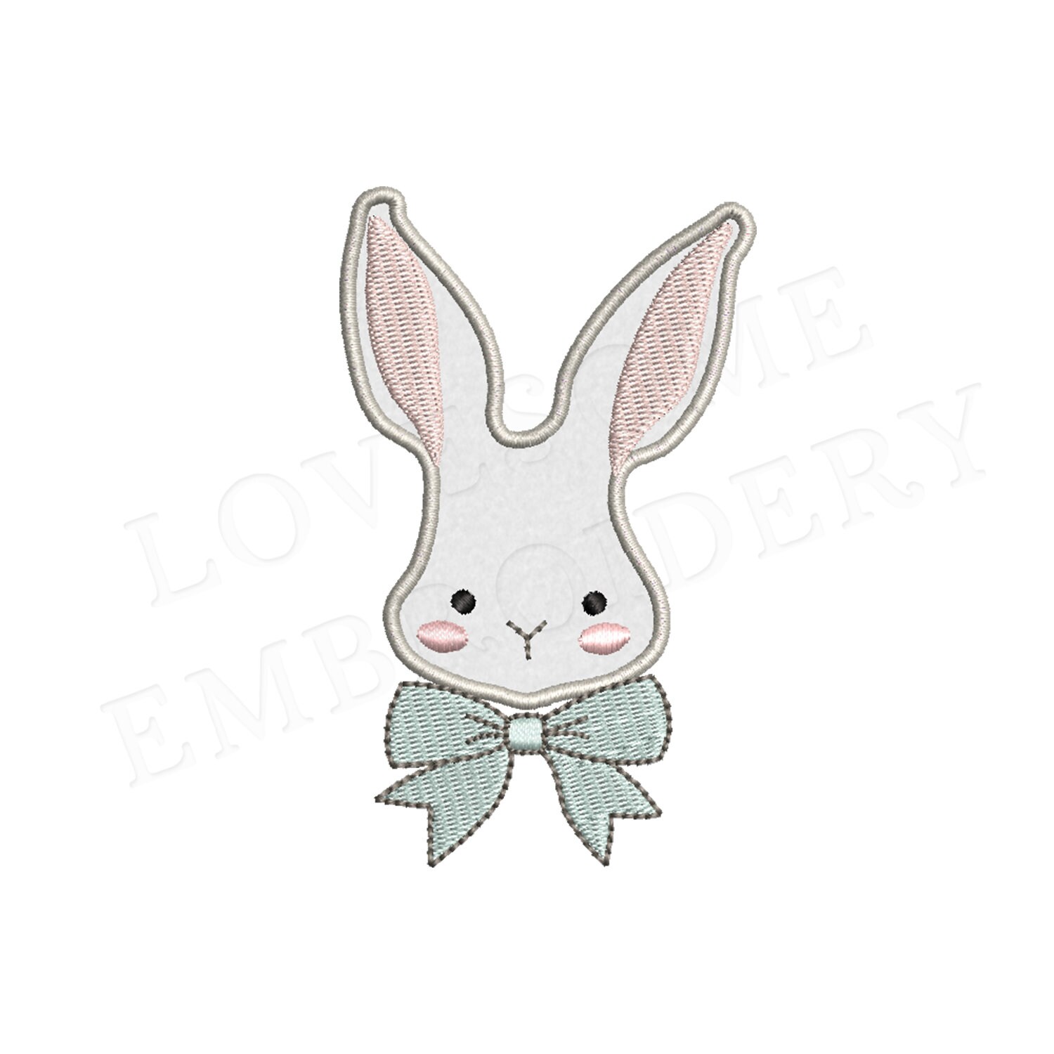 This listing features a machine embroidery file of an adorable applique little bunny with a bow in 4inch size. Designed with love for the little one.