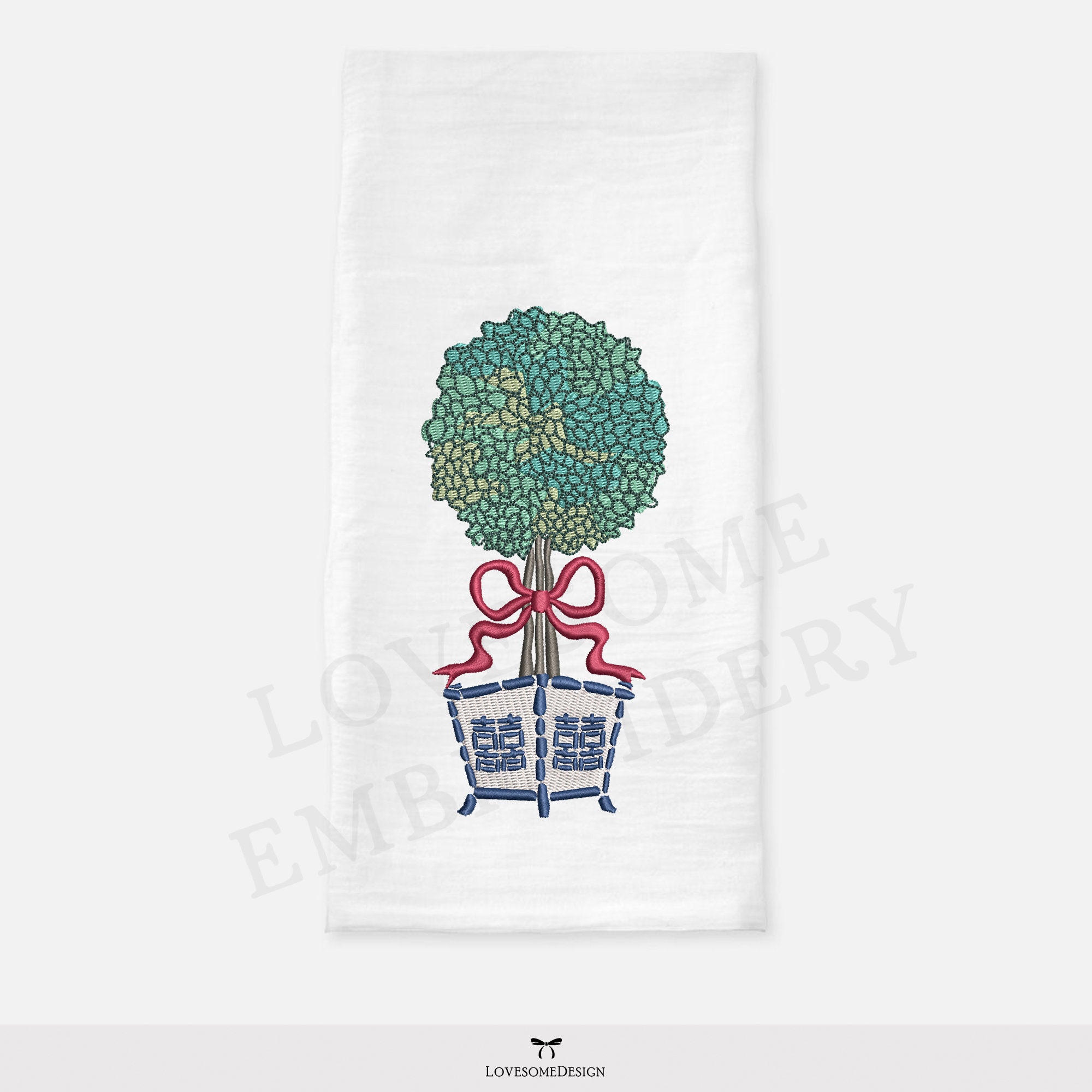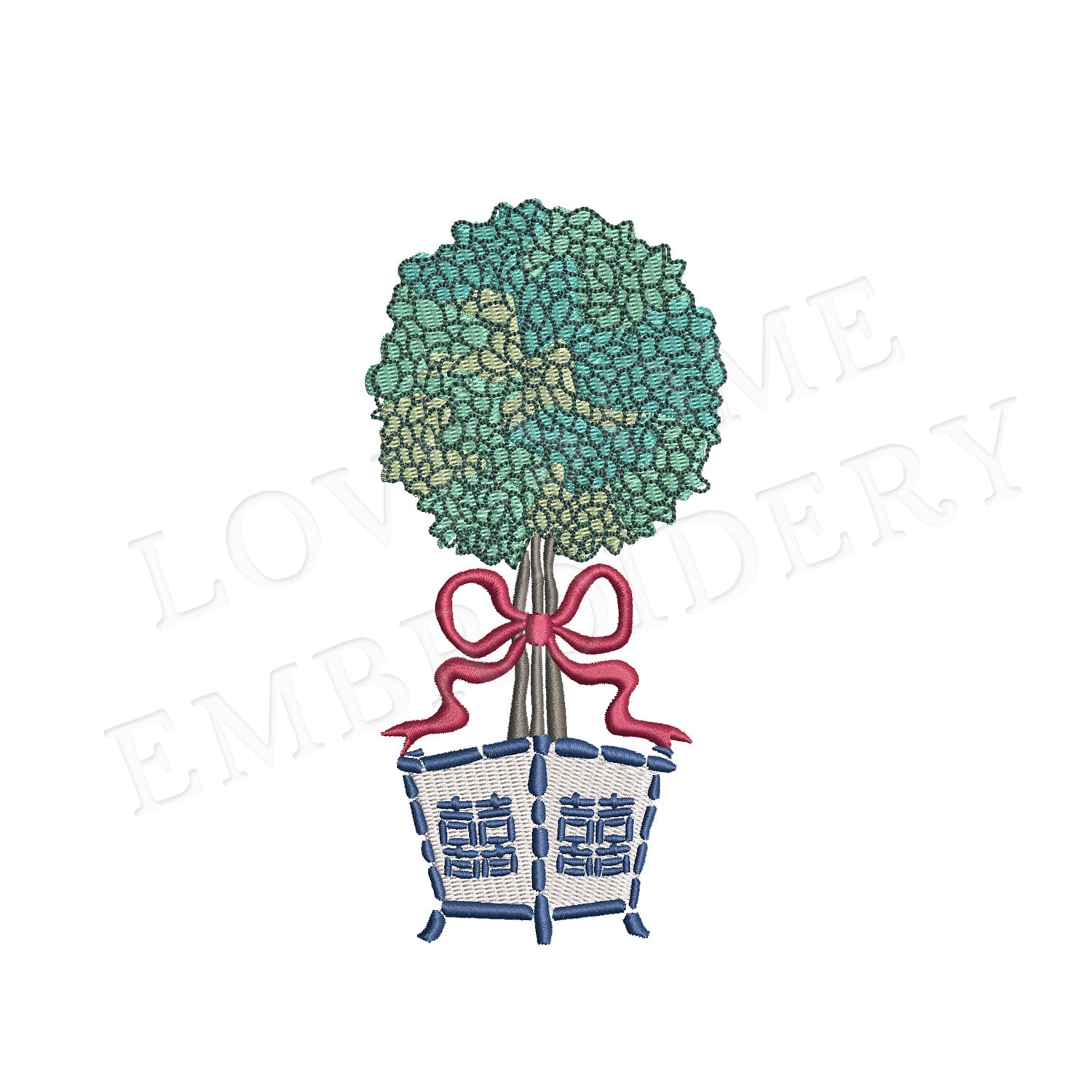 Chinoiserie Topiary 4X4 Embroidery Design, Chinoiserie Chic Topiary in a Bamboo Pot with Bow Digital Download | Lovesome Design