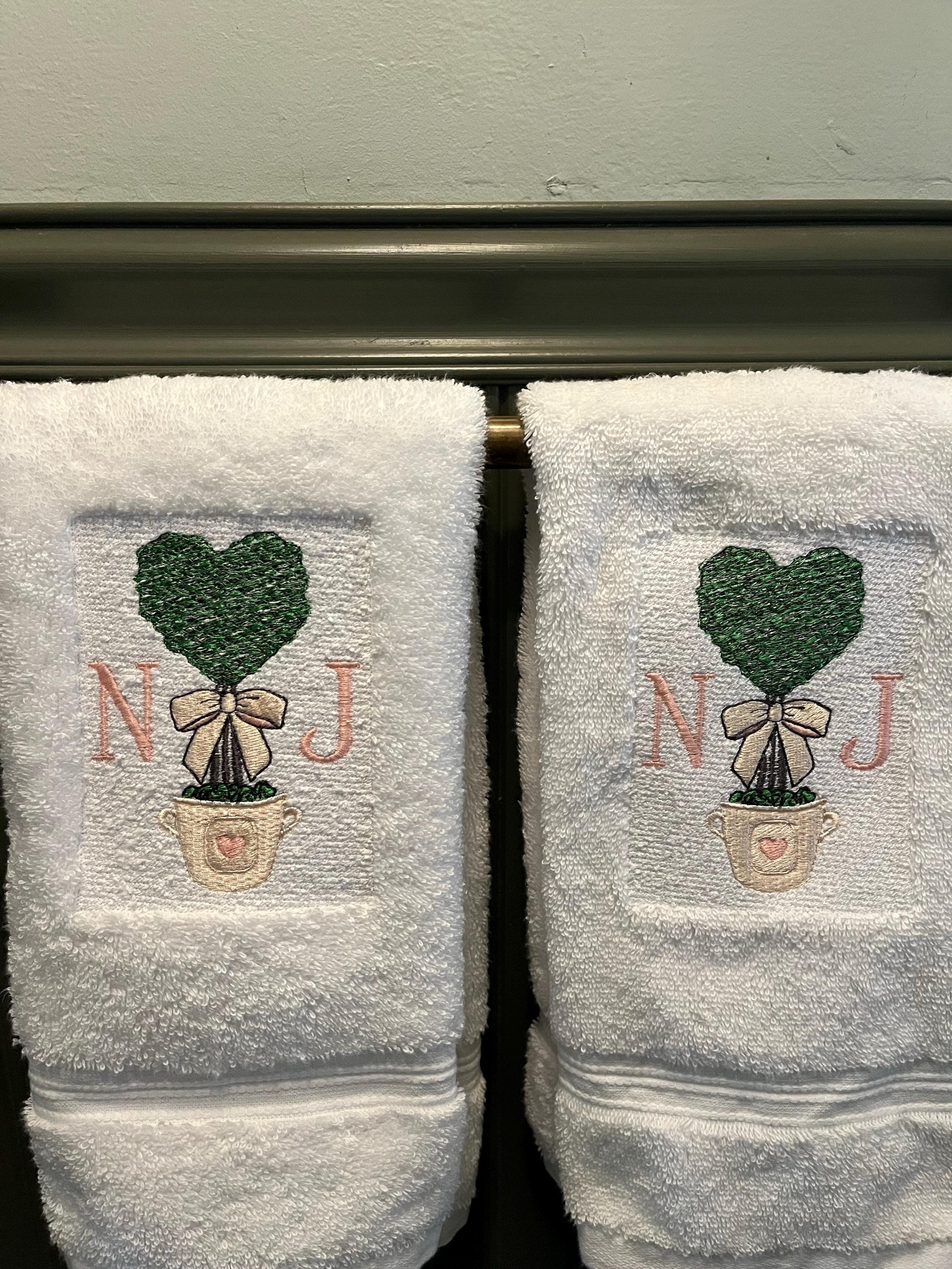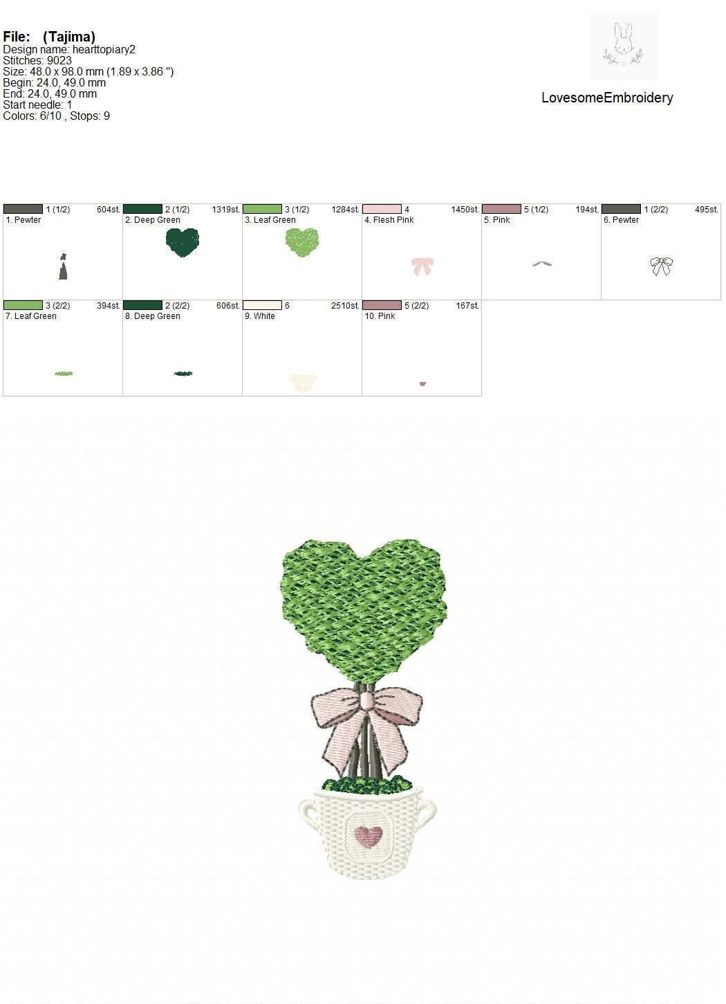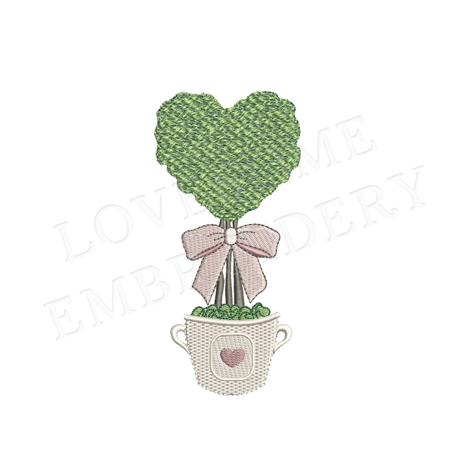 Pastel Heart Topiary 4X4 Embroidery Design, Chinoiserie Chic Topiary in a Pot with Bow Digital Download | Lovesome Design