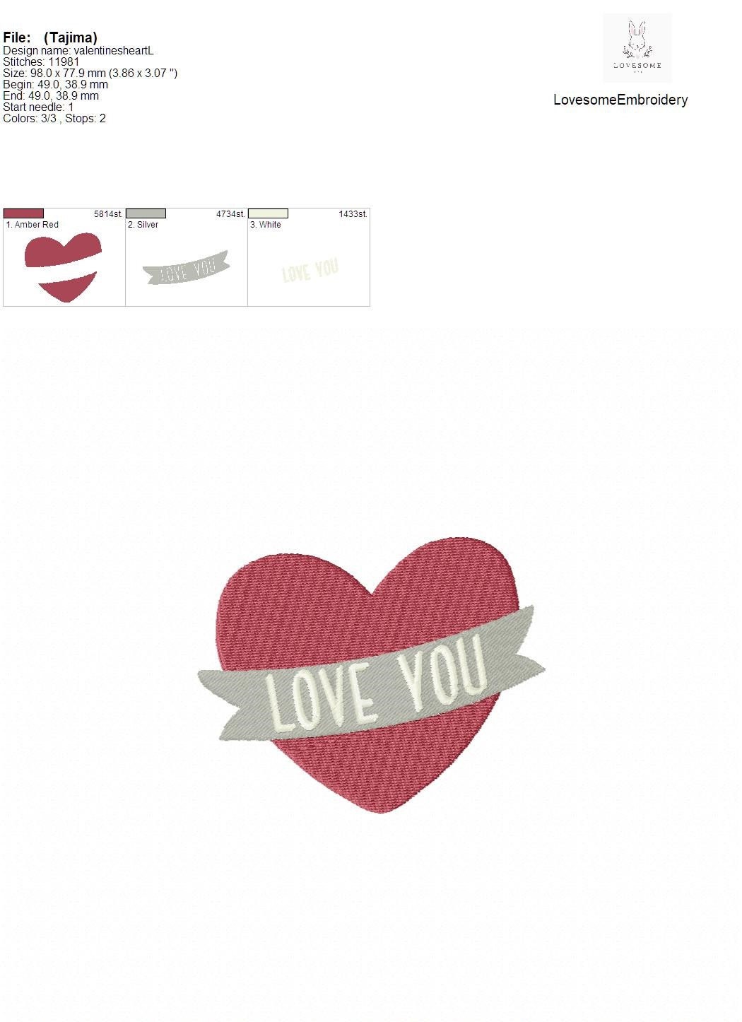 Love You Heart 4inch Valentines Day Machine Embroidery Design Digital Download | Lovesome Embroidery