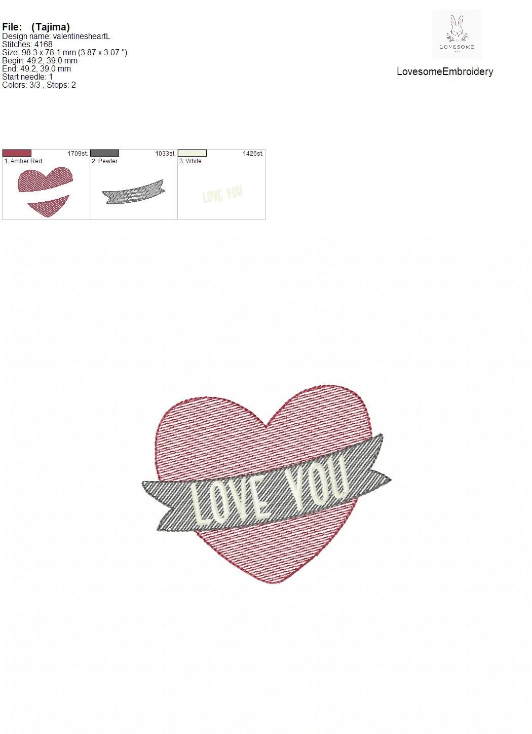 Love You Heart 4inch Quick Stitch Valentines Day Machine Embroidery Design Digital Download | Lovesome Embroidery