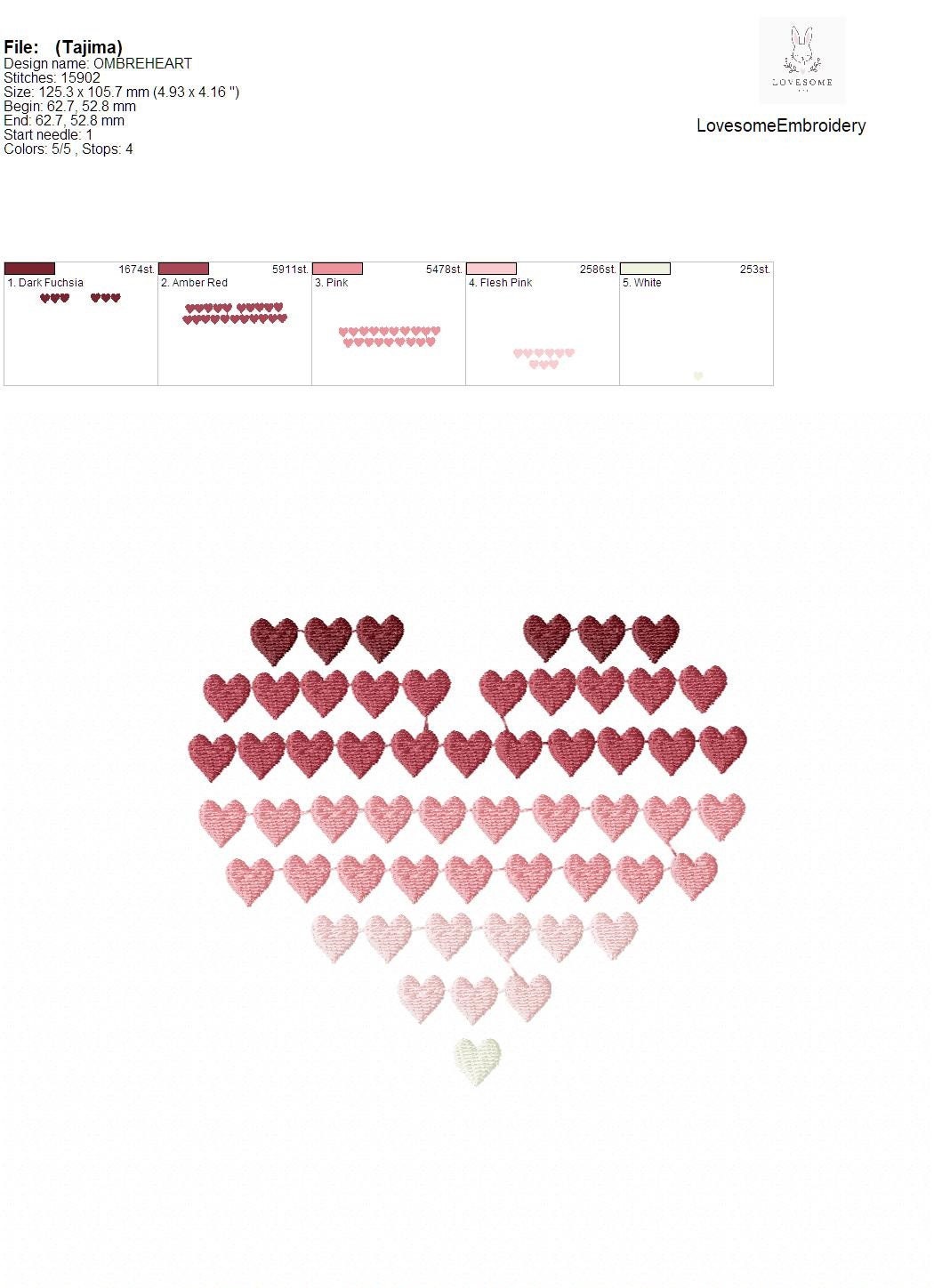 Ombre Heart 5inch Valentines Day Machine Embroidery Design Digital Download | Lovesome Embroidery
