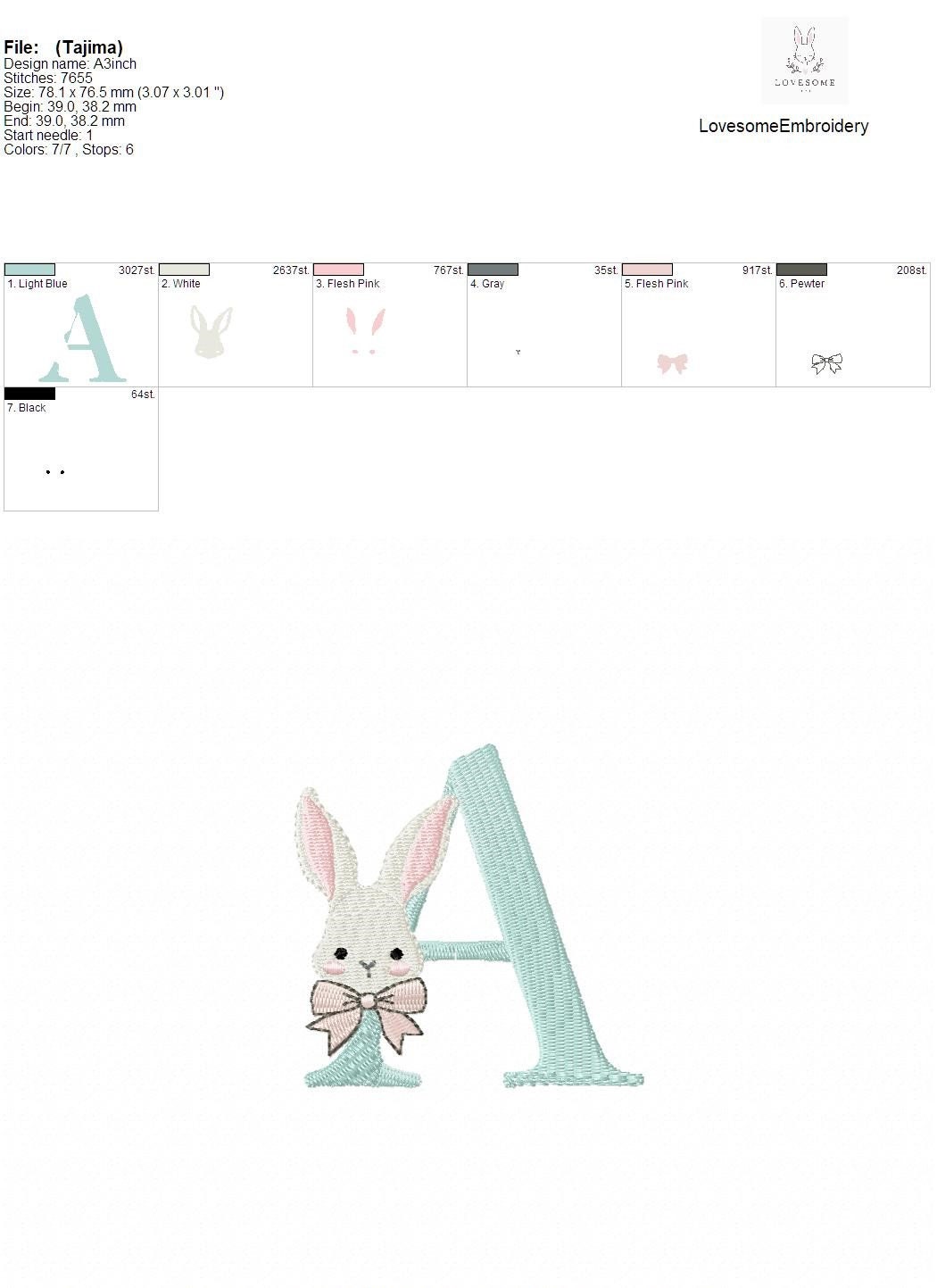Easter Bunny 3inch Alphabet A-Z Easter Rabbit with Bow Machine Embroidery Font Digital Download | Lovesome Design