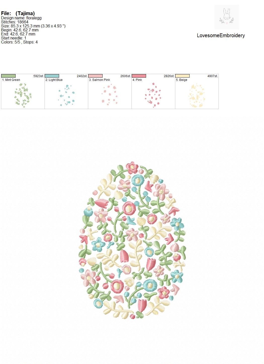 This listing features a machine embroidery file of floral fill egg in 5 inch size.