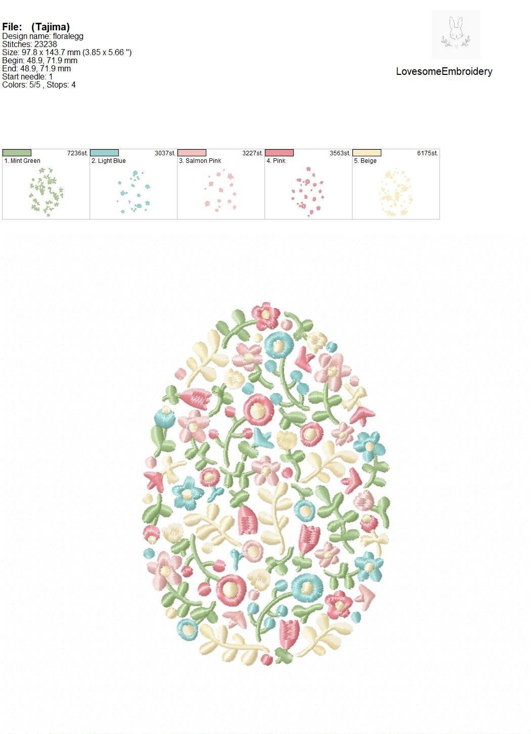 Floral Fill Egg 6inch Embroidery Design Machine Embroidery File Digital Download | Lovesome Embroidery