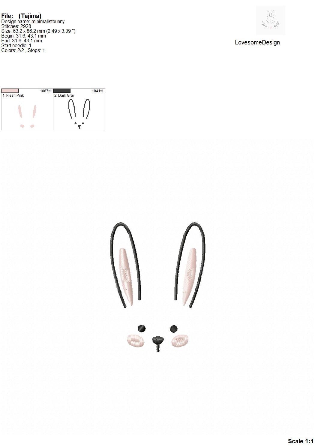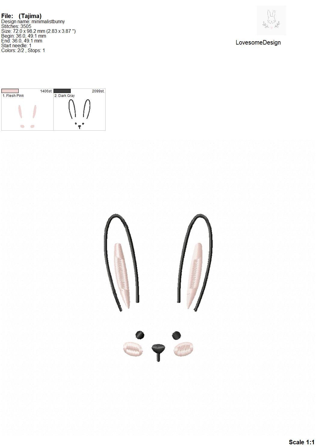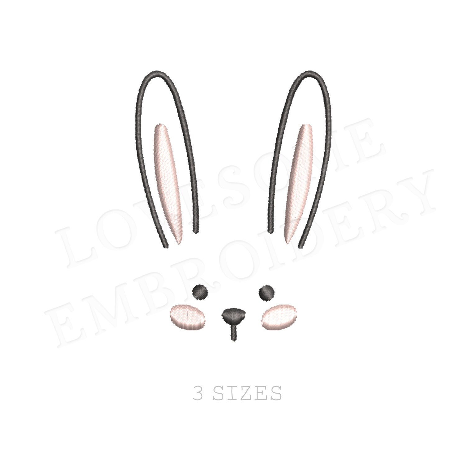 This listing features a machine embroidery file of an adorable minimalist bunny in three sizes, 4inch, 3.5inch and 3inch sizes. Designed with love for the easter apparel of the little ones.