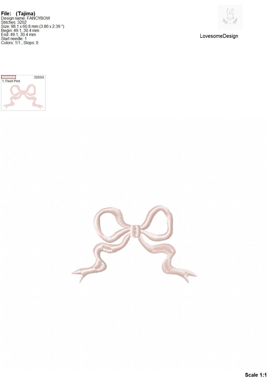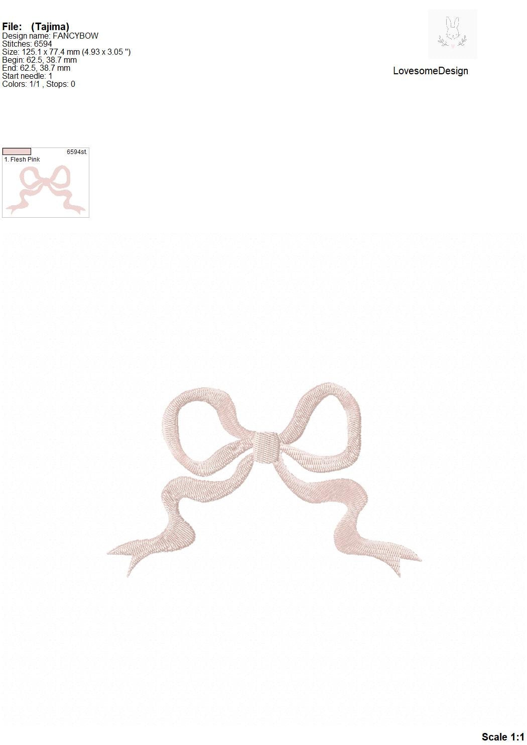 This listing includes one bow design for machine embroidery in three sizes, each appr. 6inch, 5inch and 4inch size for embroidery hoops in different sizes. Bows in fill stitch and satin stitch versions both included for each size.
