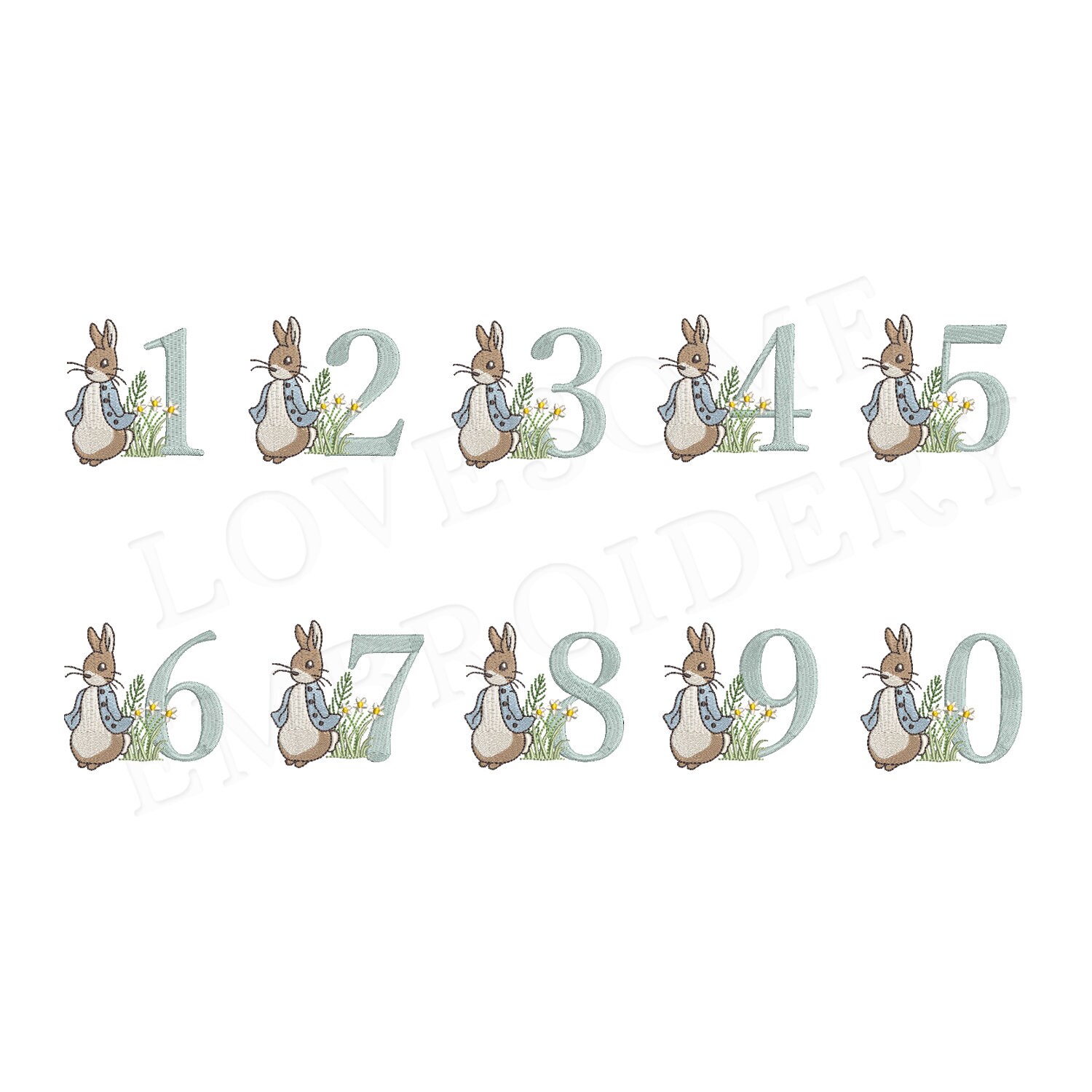 Numbers Peter Rabbit 3inch 0-9 Machine Embroidery Numbers Digital Download | Lovesome Design