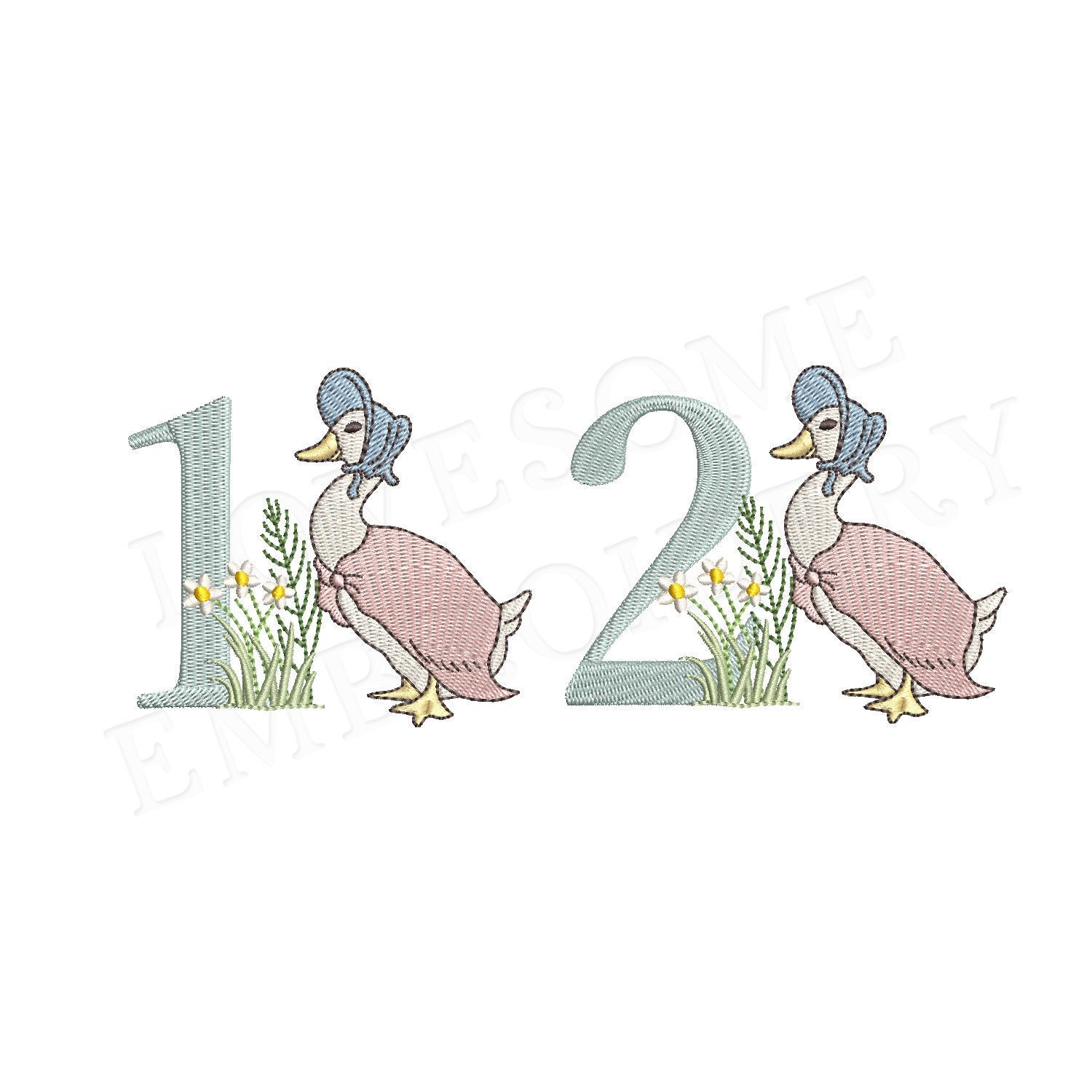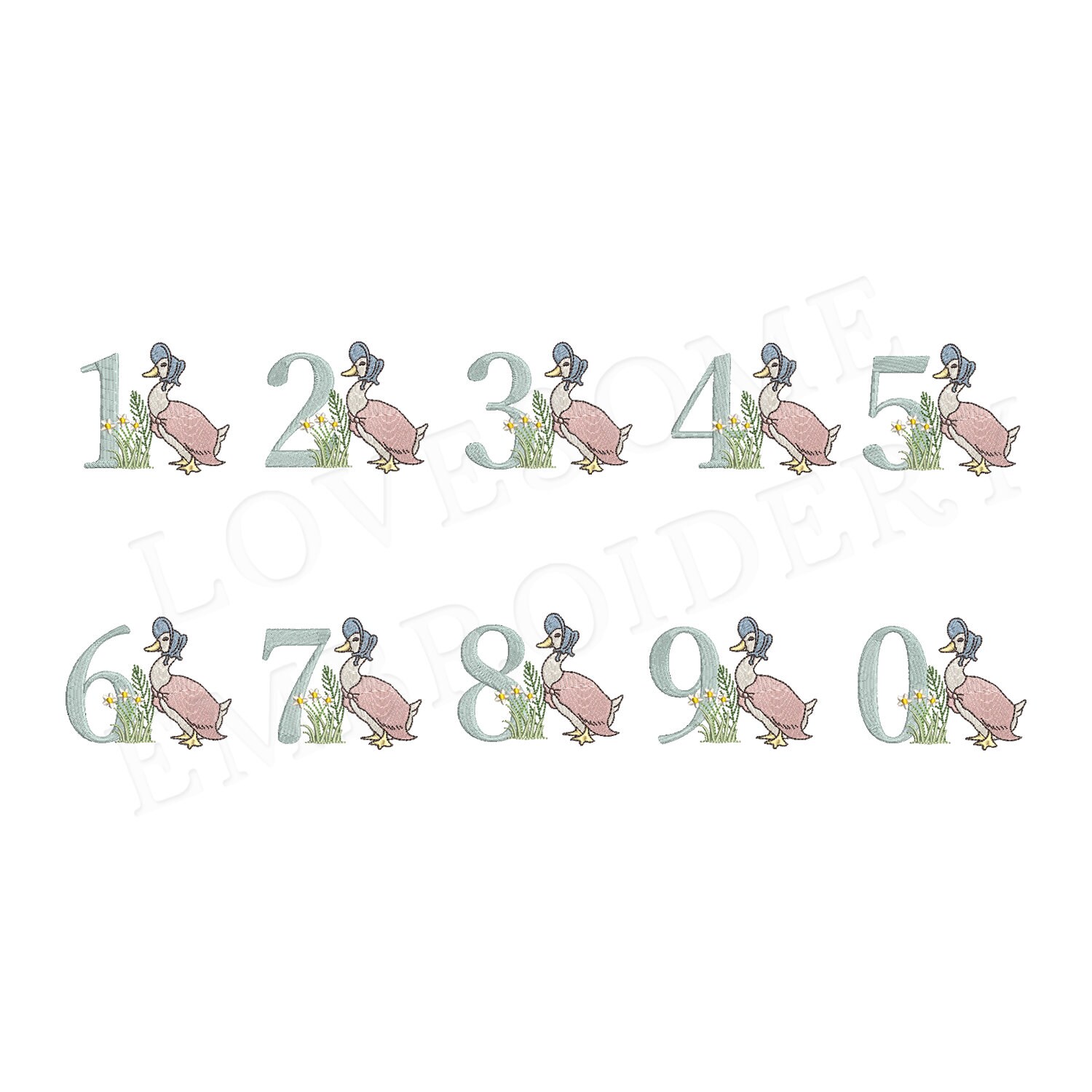 Numbers Jemima Puddleduck 3inch 0-9 Machine Embroidery Numbers Digital Download | Lovesome Design