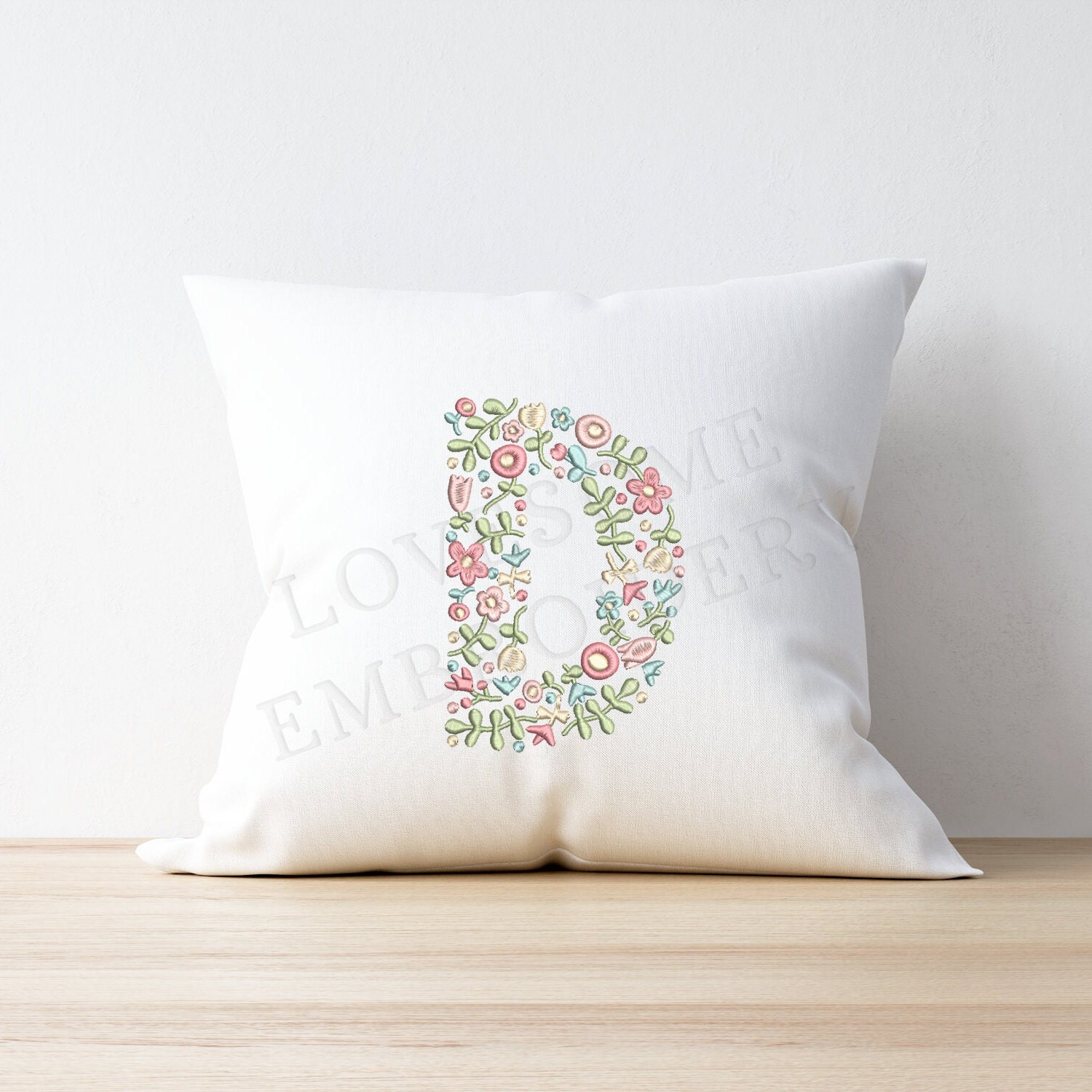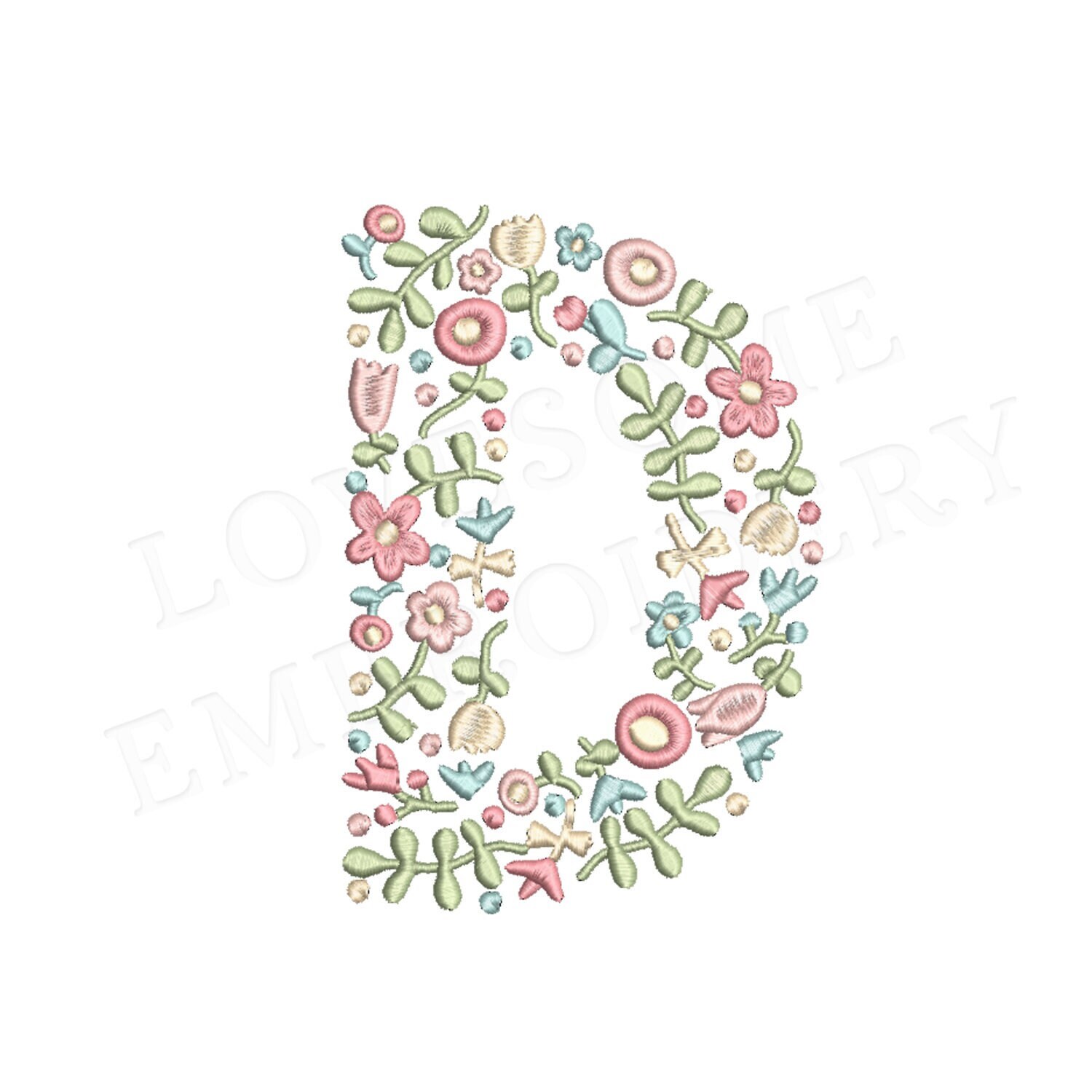 NEW Floral Letter D 8inch A-Z Machine Embroidery Design Dainty Flowers Letters in Spring Colors Digital Download | Lovesome Design