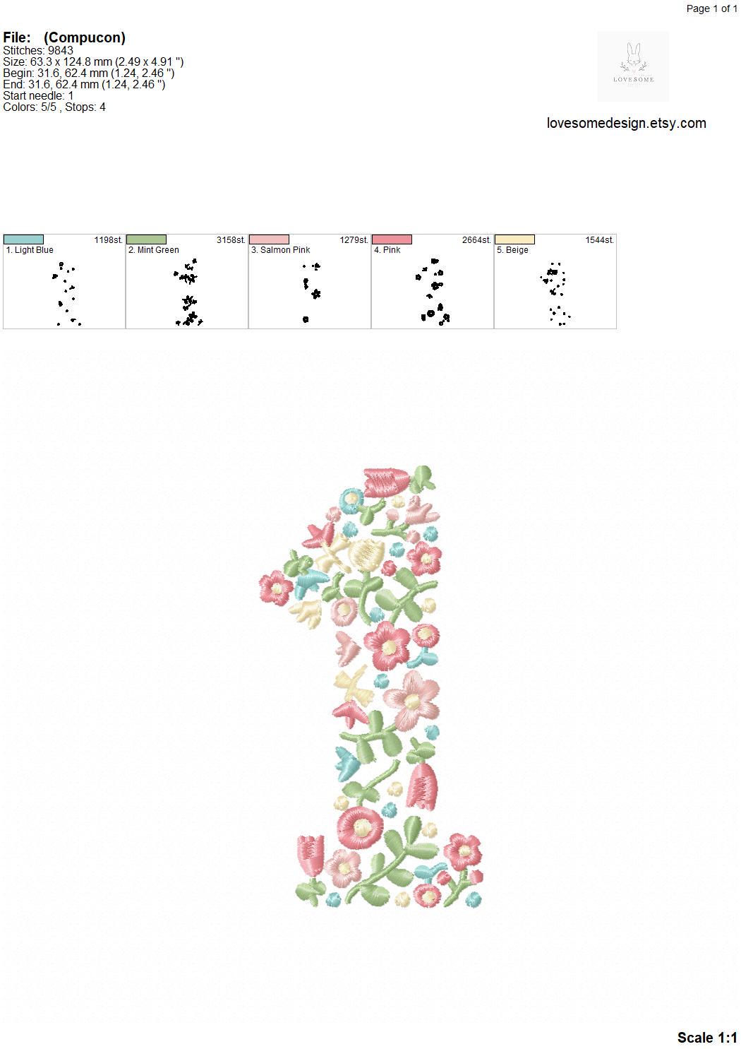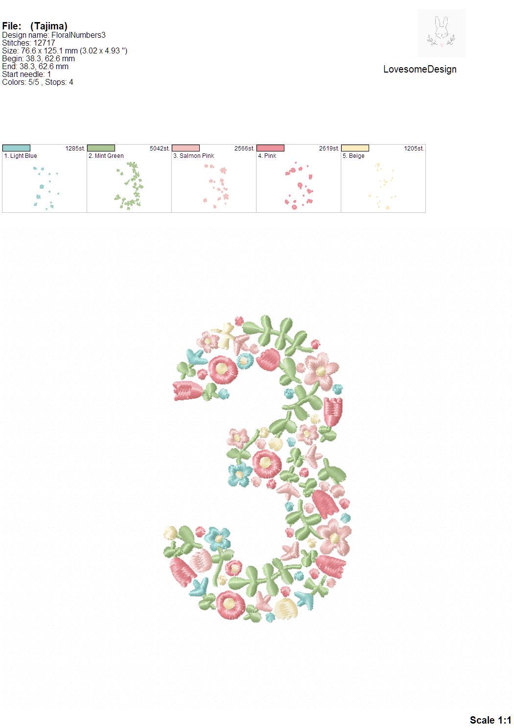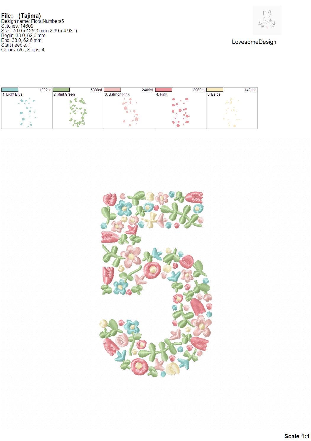 NEW Floral Numbers 5inch 0-9 Machine Embroidery Font Dainty Flowers Numbers in Spring Colors Digital Download | Lovesome Design