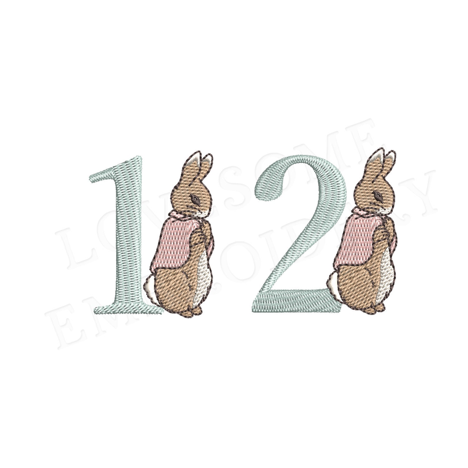 Numbers Cottontail Rabbit 2inch 0-9 Machine Embroidery Numbers Digital Download | Lovesome Design
