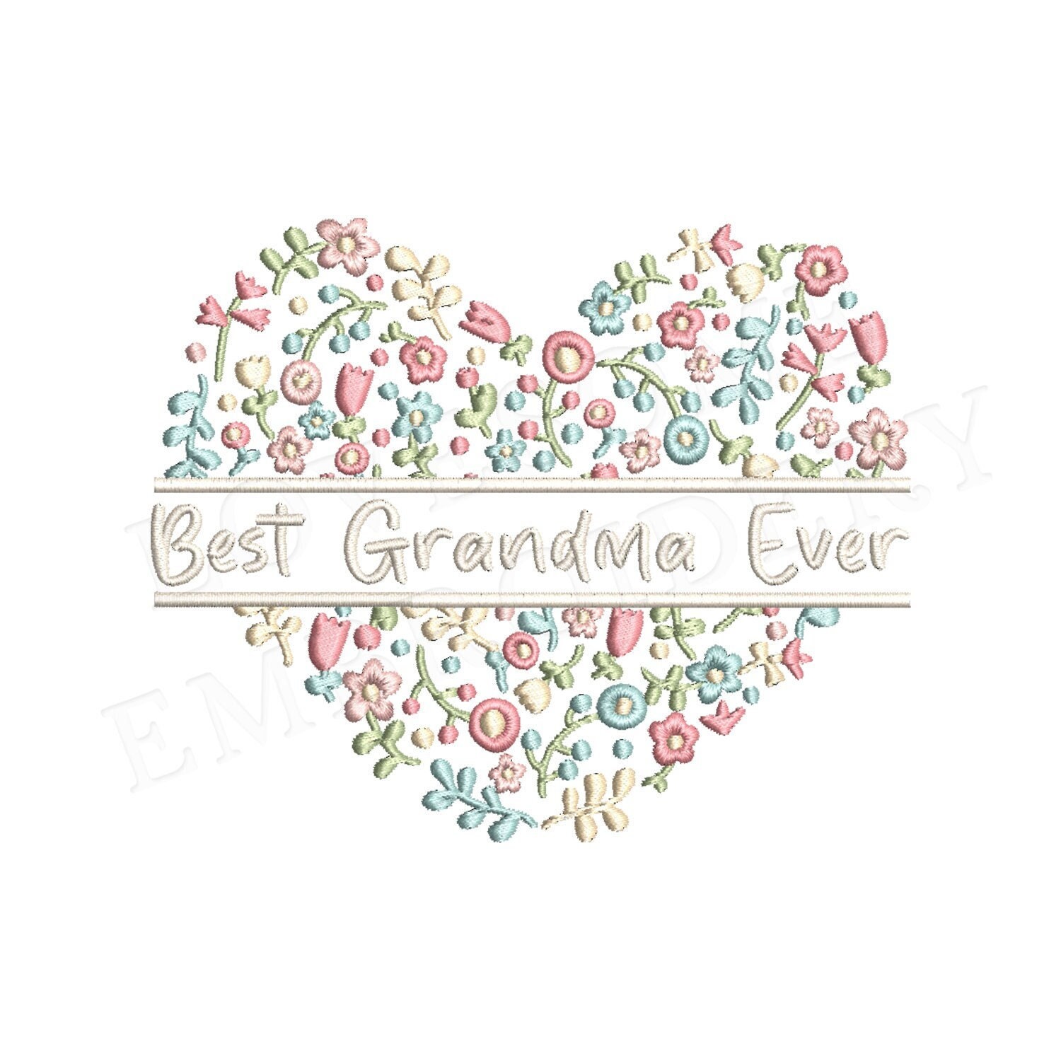 Best Grandma Ever 8inch Floral Fill Heart Split Embroidery Design Machine Embroidery File Digital Download | Lovesome Design