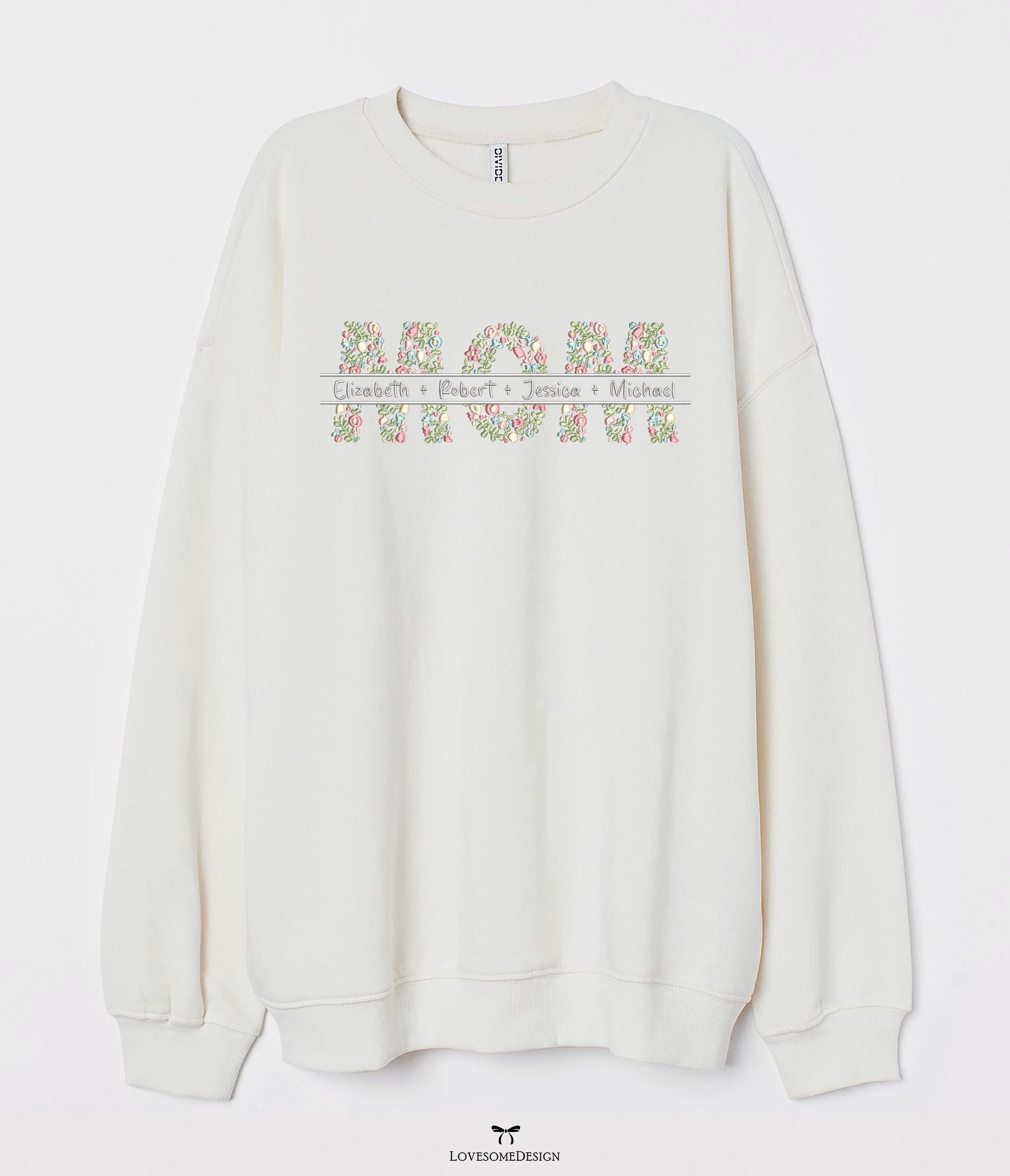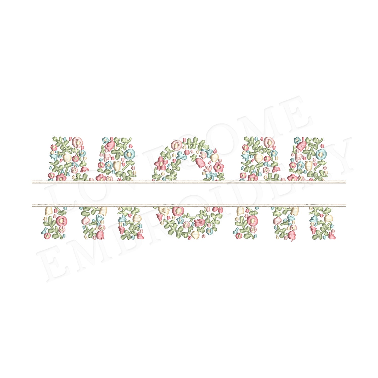 This listing features a machine embroidery file of floral fill split mom lettering in 7 inch size. You can customize by adding the text you wish. It would make a great mothers day gift when stitched with kids names in the split area.