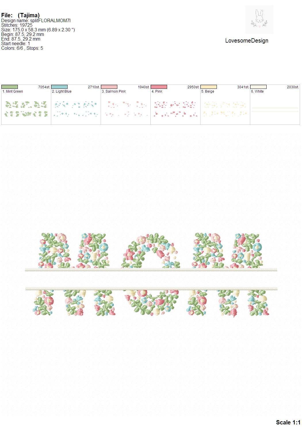 Floral Fill Mom Split 7inch Embroidery Design Machine Embroidery File Digital Download | Lovesome Design