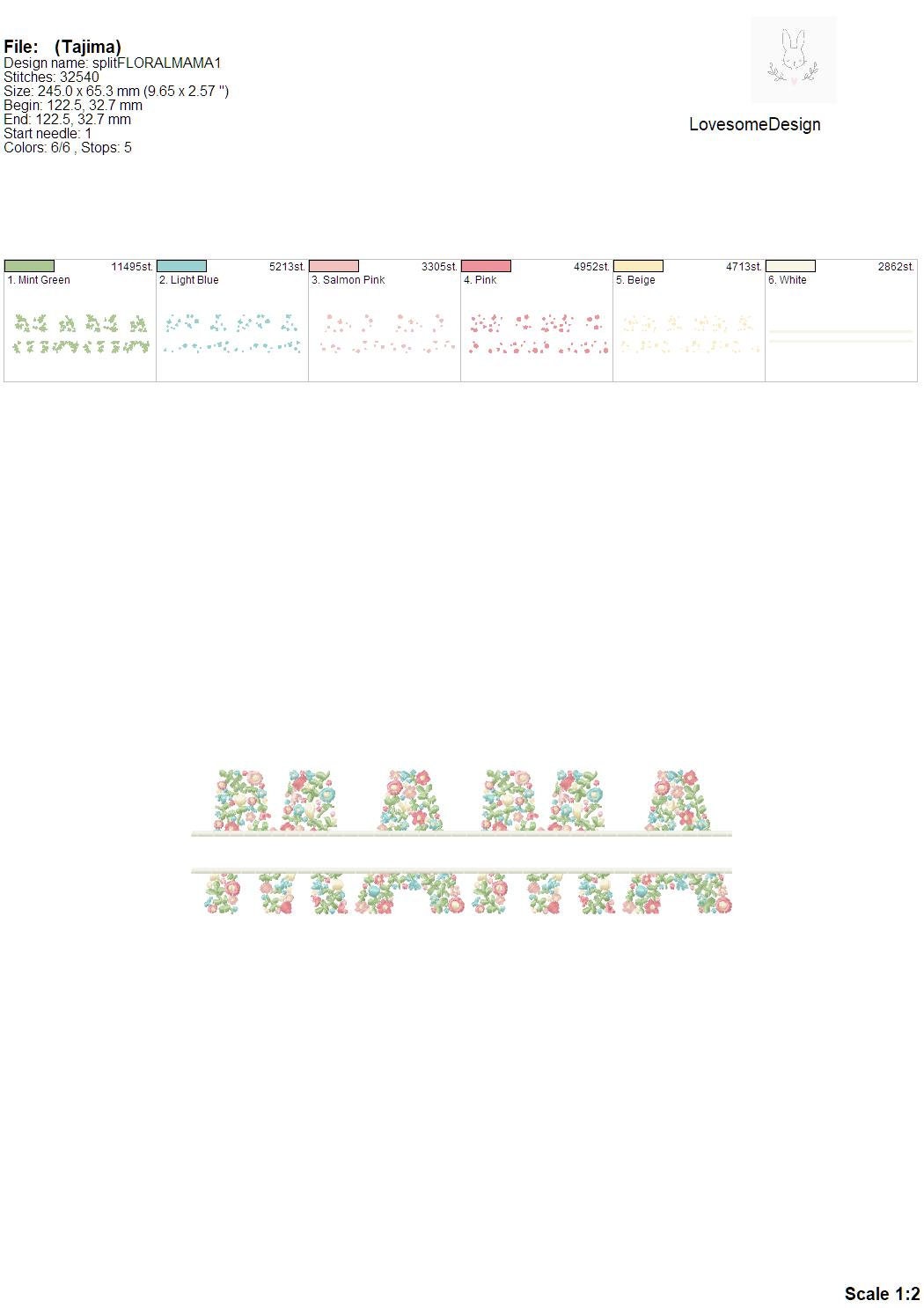 Floral Fill Mama Split 10inch Embroidery Design Machine Embroidery File Digital Download | Lovesome Design
