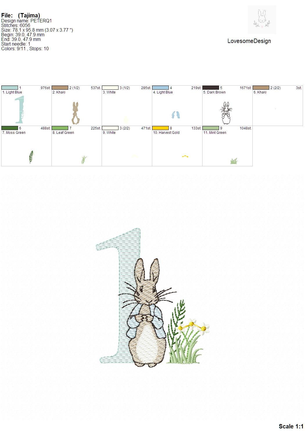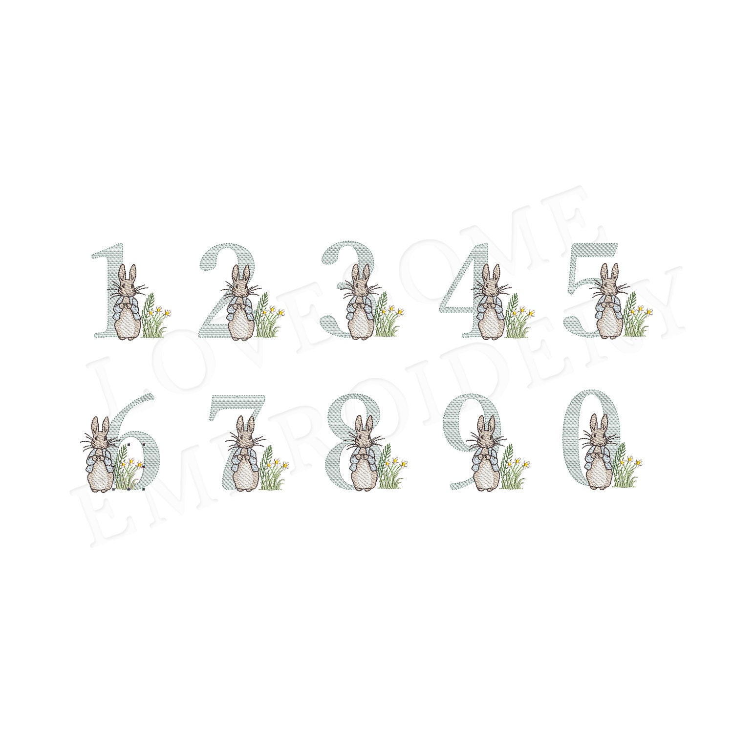 This listing features a machine embroidery numbers set which includes embroidery files of ten numbers (0-9) with Peter Rabbit design in 4inch size all in quick stitch (aka sketch fill) for 4x4 hoops for machine embroidery. (For the whole set, pls see the listing images.)