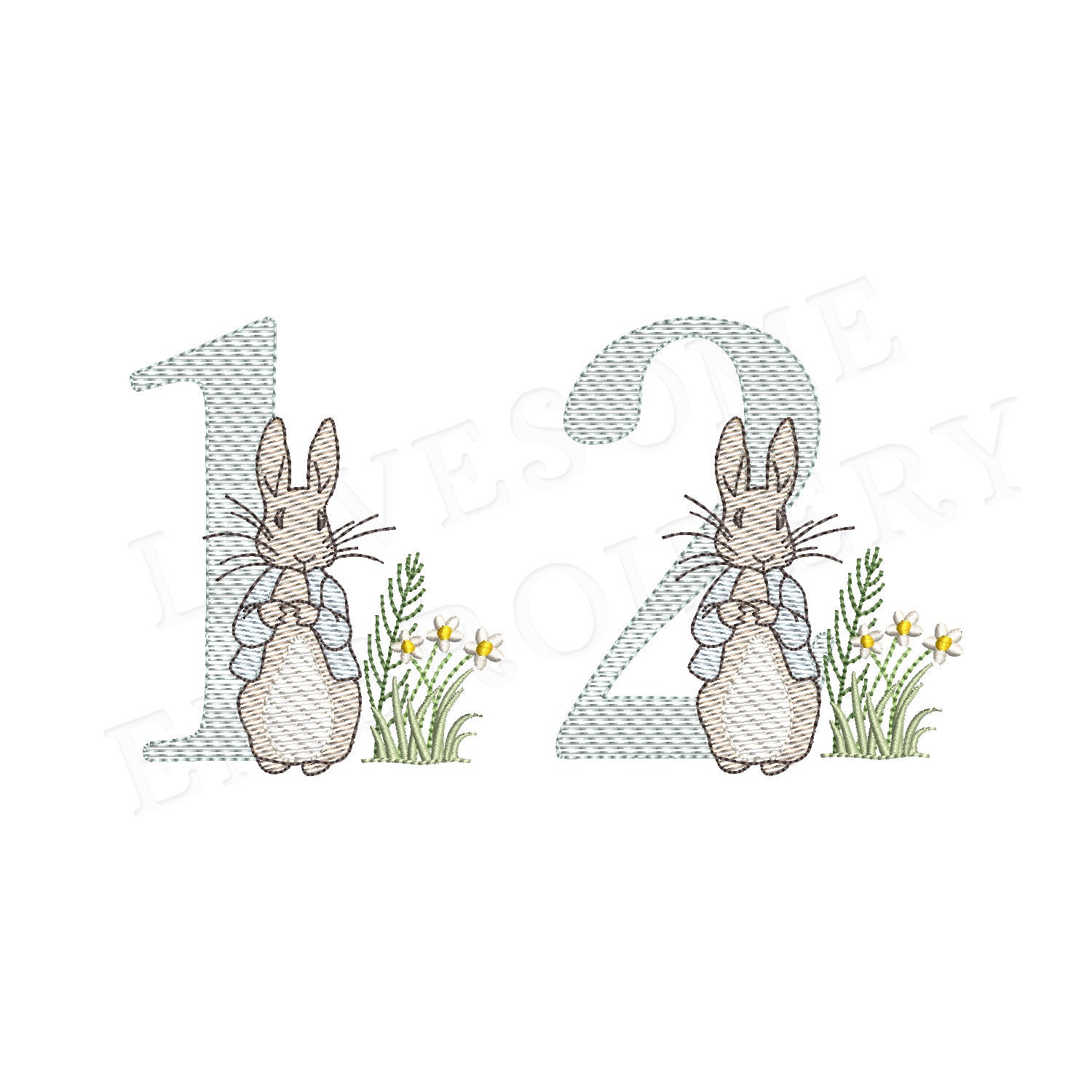 Numbers Peter Rabbit Quick Stitch 4inch 0-9 Machine Embroidery Numbers Digital Download | Lovesome Design