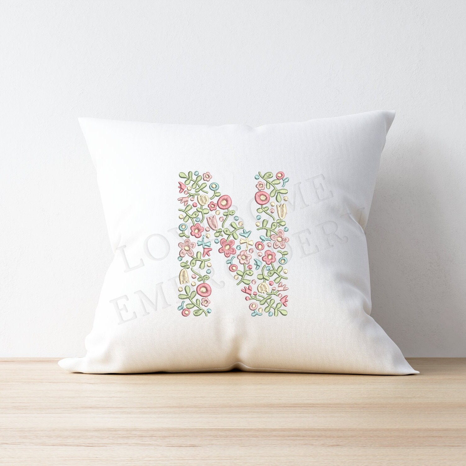 NEW Floral Letter N 8inch A-Z Machine Embroidery Design Dainty Flowers Letters in Spring Colors Digital Download | Lovesome Design