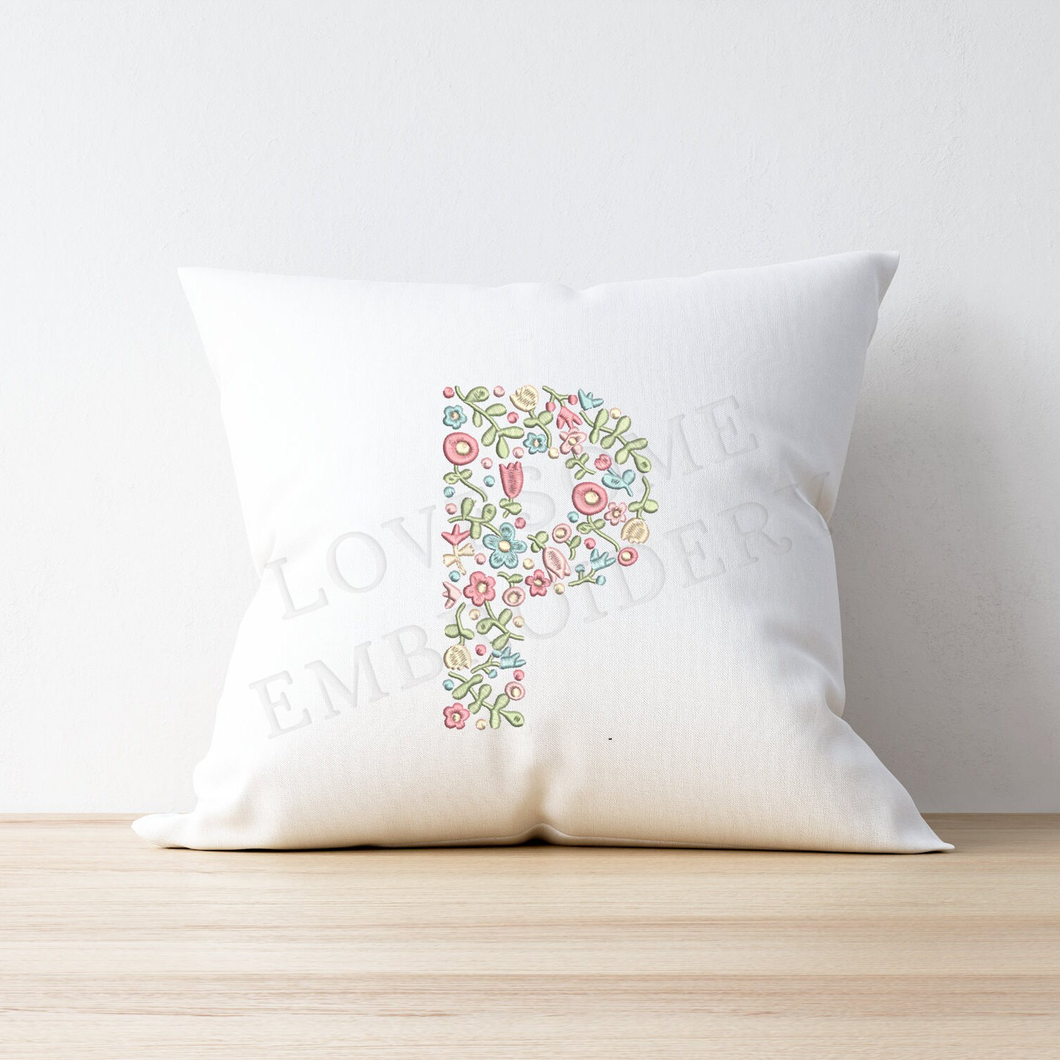 NEW Floral Letter P 8inch A-Z Machine Embroidery Design Dainty Flowers Letters in Spring Colors Digital Download | Lovesome Design