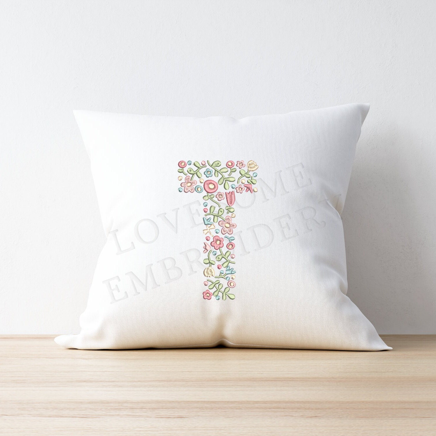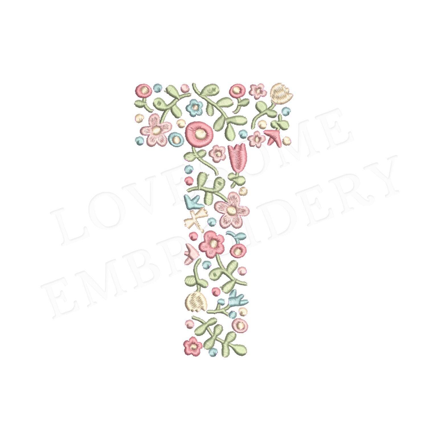 NEW Floral Letter T 8inch A-Z Machine Embroidery Design Dainty Flowers Letters in Spring Colors Digital Download | Lovesome Design