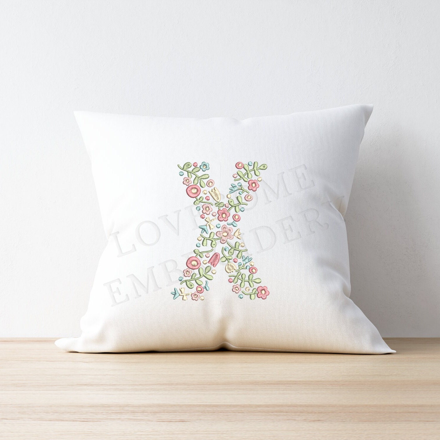NEW Floral Letter X 8inch A-Z Machine Embroidery Design Dainty Flowers Letters in Spring Colors Digital Download | Lovesome Design